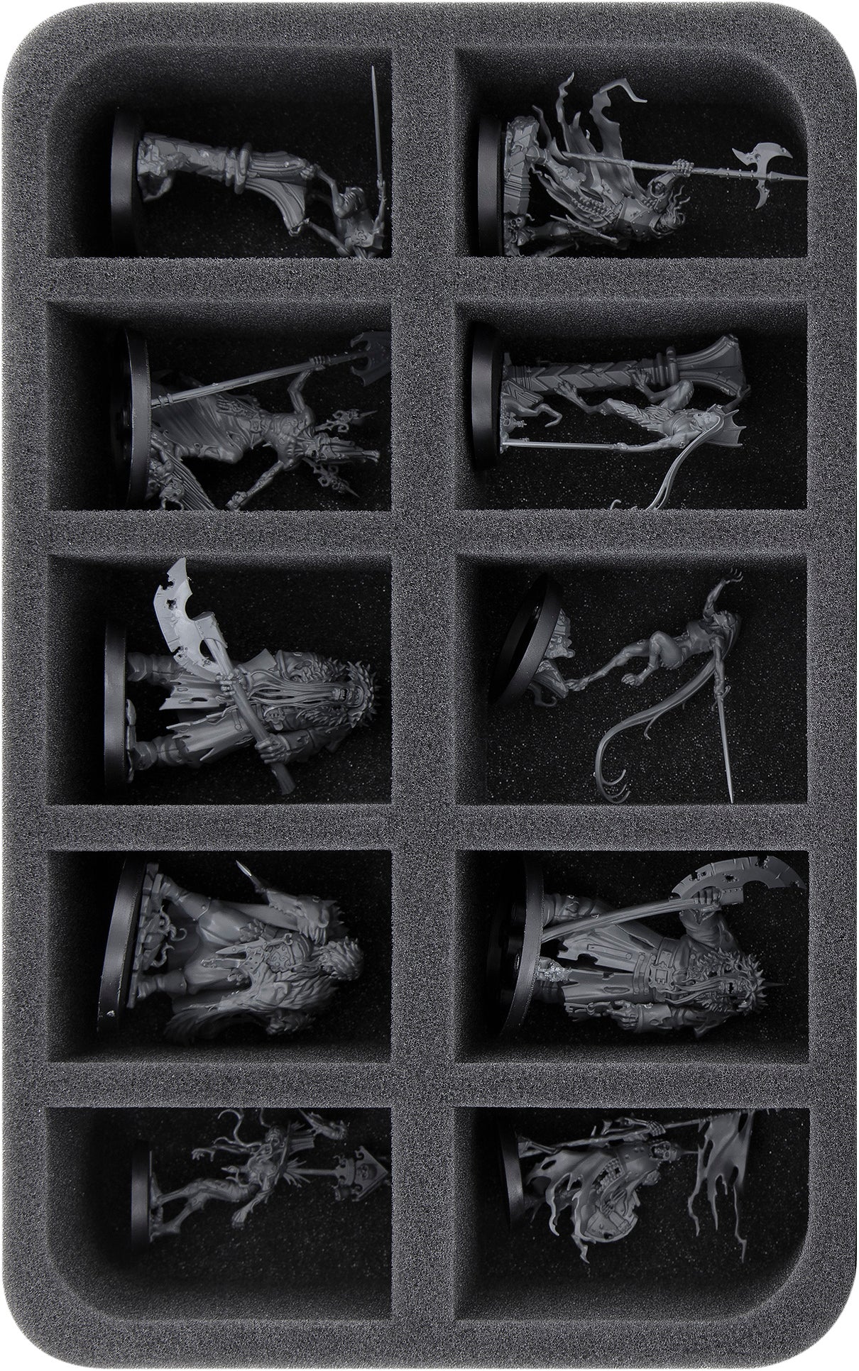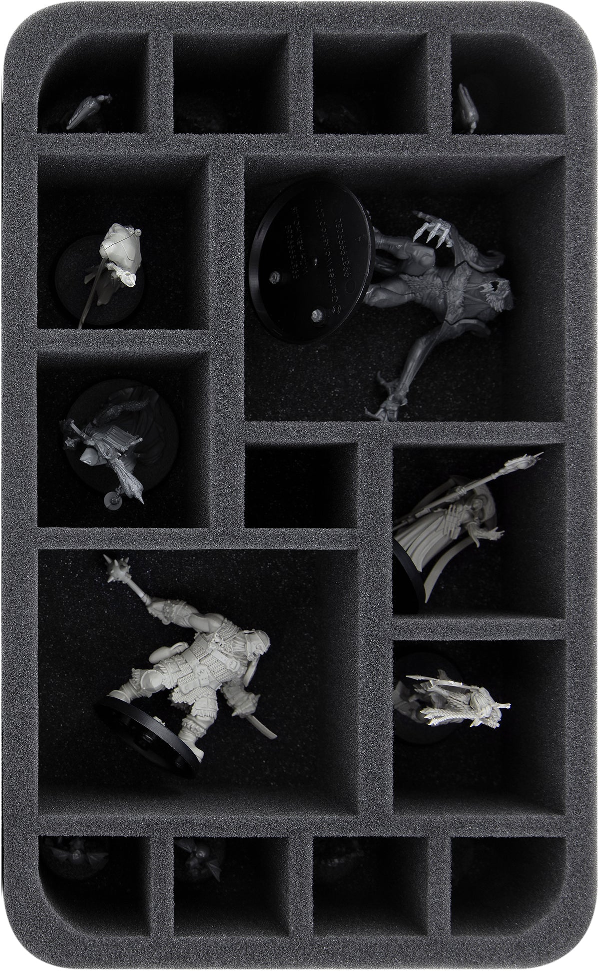 One Full-Size and 4 Half-Size foam trays give you enough room to safely escort your hero, hostile and object models into the cursed city. Each model is assigned its own custom-fit compartment to keep them from sliding around and bumping into each other along the way. The fine miniatures are well protected and delicate details are spared from damage. After you have painted your models, you can be sure that the colors are still intact after transport.