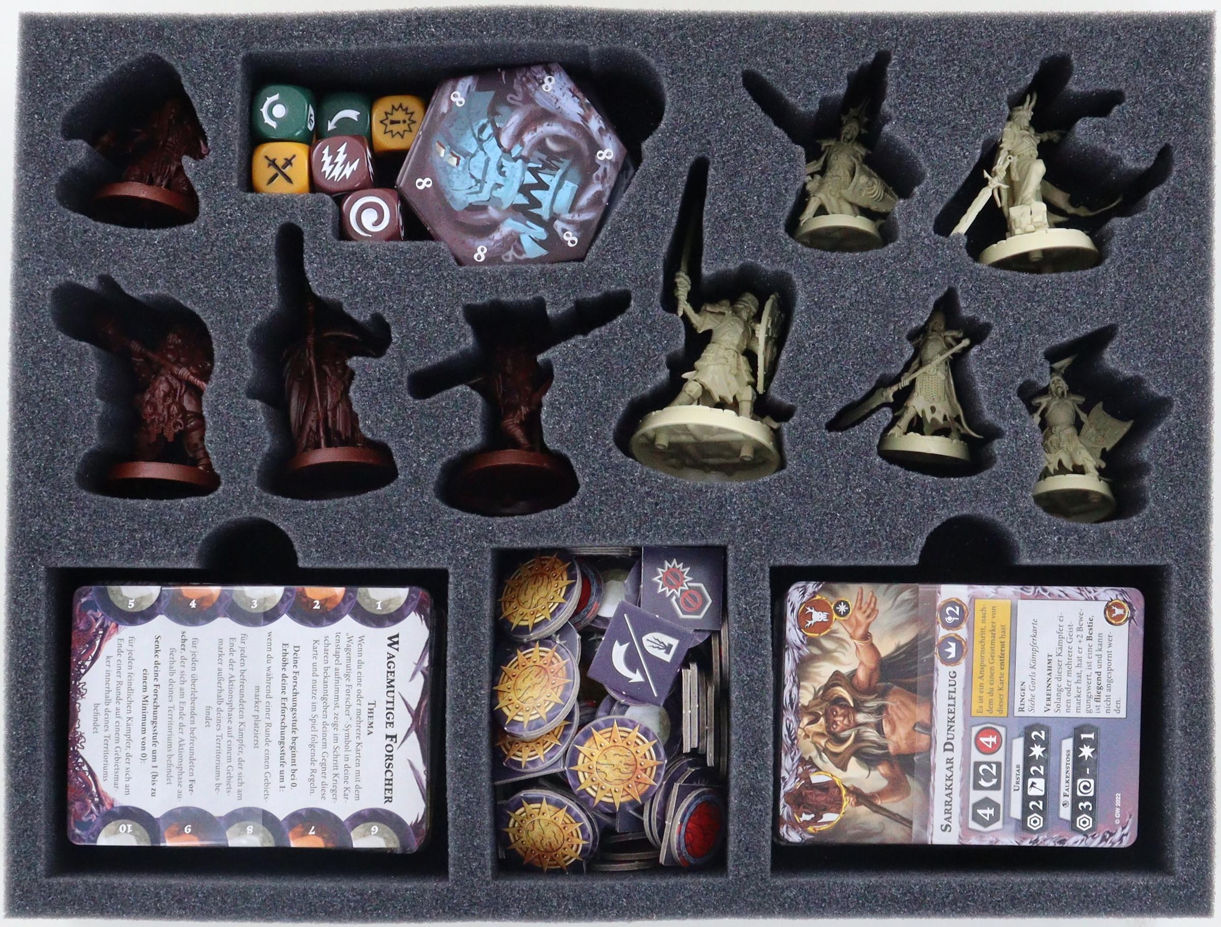 - The foam set offers space for all miniatures, cards, and the game material of the "Warhammer Underworlds: Gnarlwood." core game