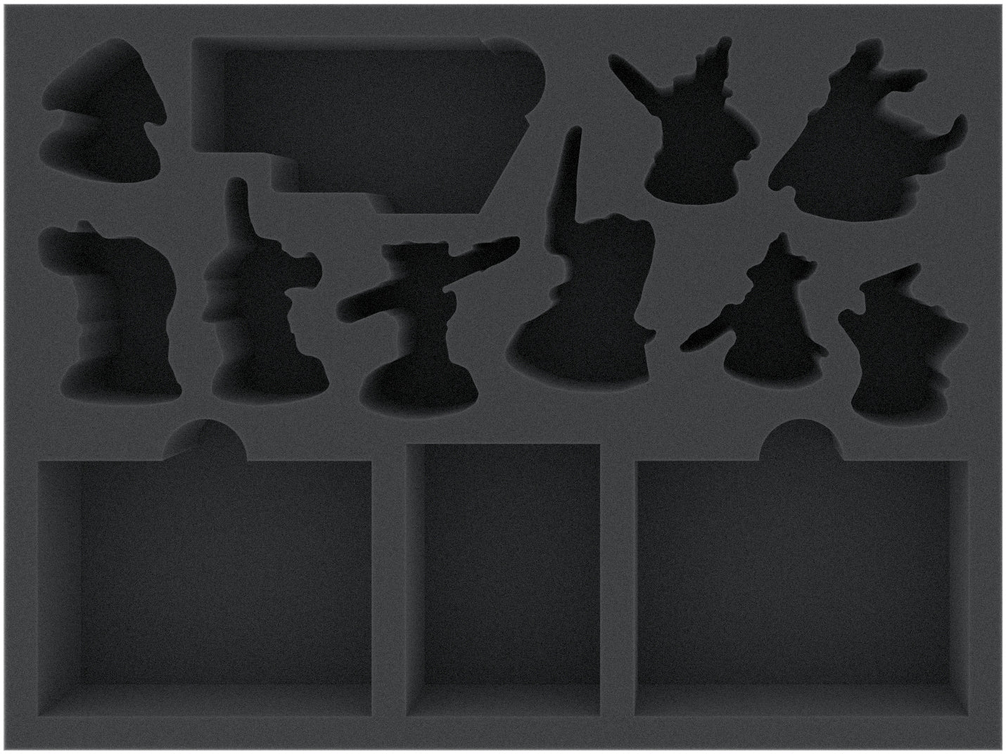 The custom-fit cut ensures that the miniatures have a tight fit and stay in place even when transported through the impassable Gnarlwood and do not bump into each other. The soft foam reliably protects your figures from breaking off details and the colors of your painted models.