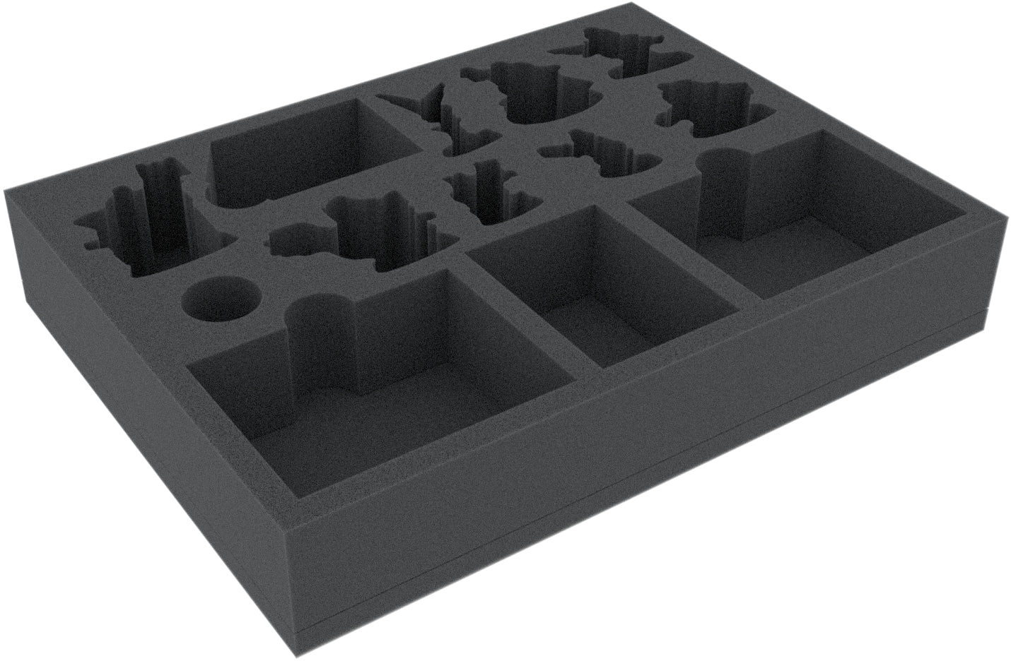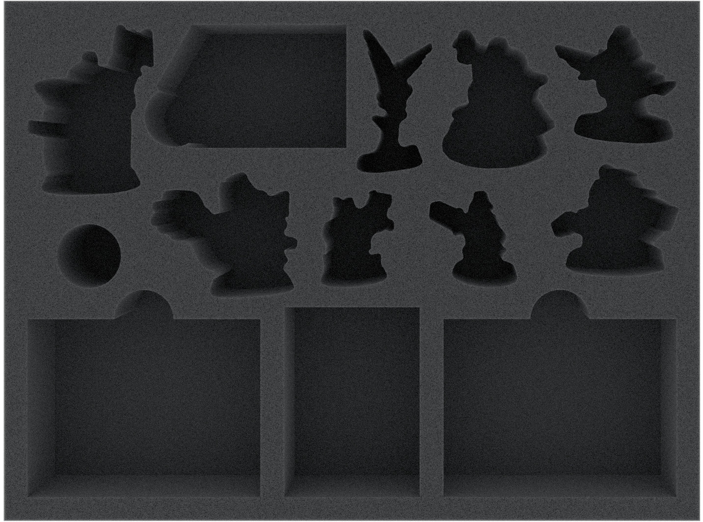 The Feldherr foam tray fits exactly into the original game box of “Warhammer Underworlds: Harrowdeep” For neat and safe storage of your figures and all the game material, you have a total of 13 compartments.