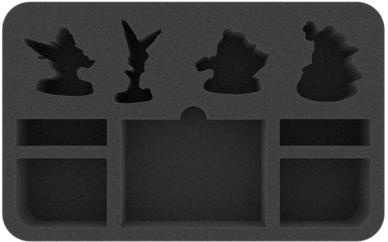 The four Stormcast are given miniature-precisely cut compartments. Calthia Xandire, Dhoraz Giant-fell, Luxa Stormrider, and Taros, therefore, have a tight fit and can not bump against each other during transport. The soft, fine-pored foam reliably protects lanterns, hammers, bows, wings, and all other delicate details from damage. The colors of your painted miniatures will also be spared from ugly scratches and chipped paint.
