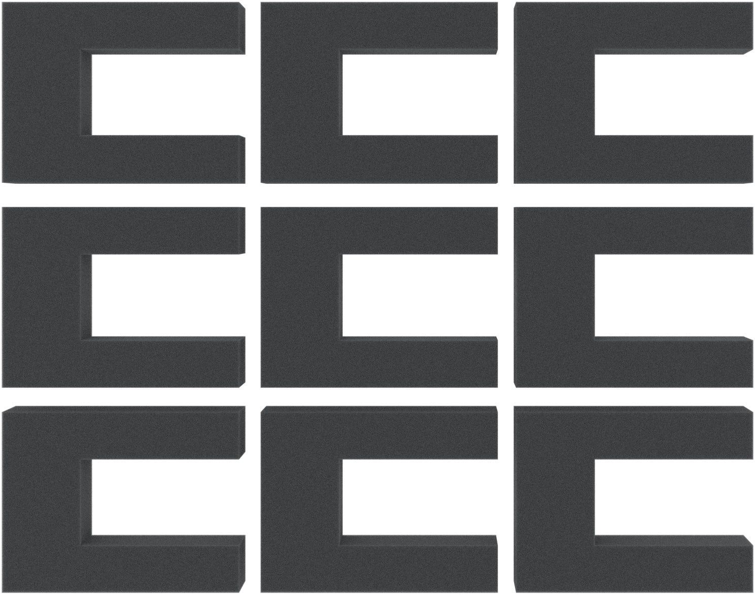 - Dimensions of the foam pieces: 105 mm long x 80 mm wide x 20 mm deep