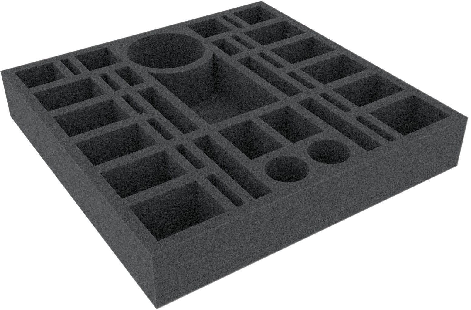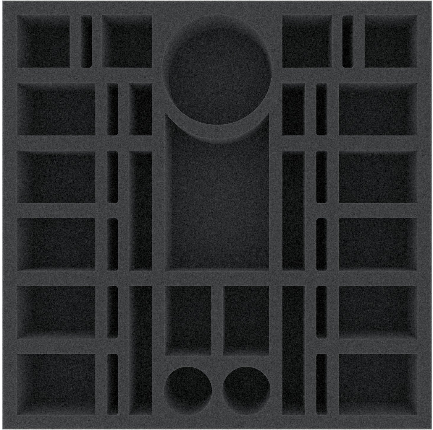 This foam tray is divided into 38 compartments of different sizes. It is particularly suitable for the safe storage of miniatures of various board games. It can also be used to sort accessories such as tokens, cards, and dice.