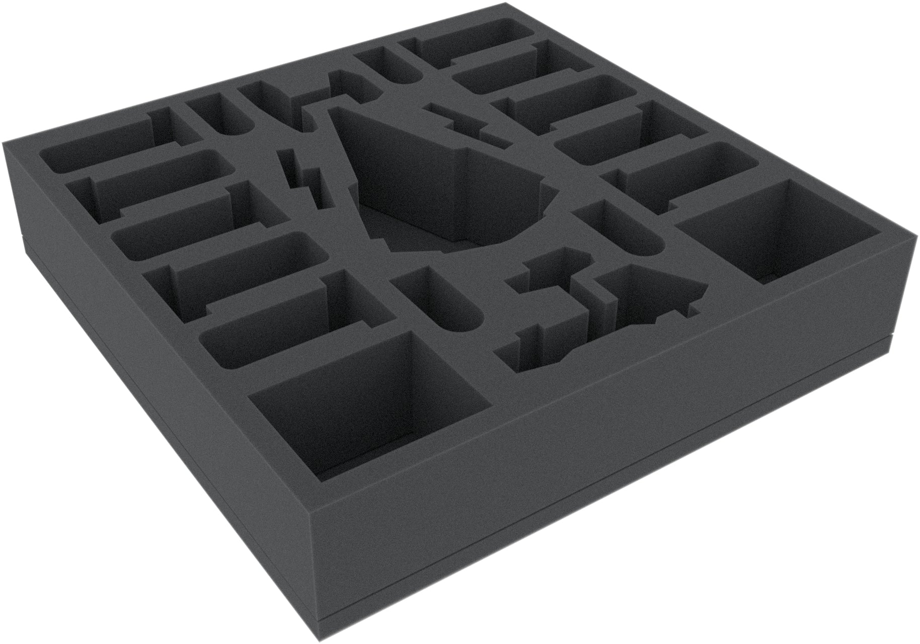 This Feldherr foam tray has the dimensions: 285 mm x 285 mm x 60 mm total height (50 mm usable height + 10 mm foam base).