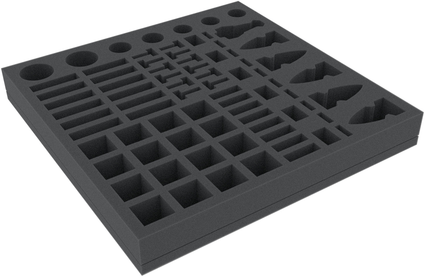 - The foam tray has the dimensions: 285 mm x 285 mm x 35 mm total height (25 mm usable height + 10 mm foam base).