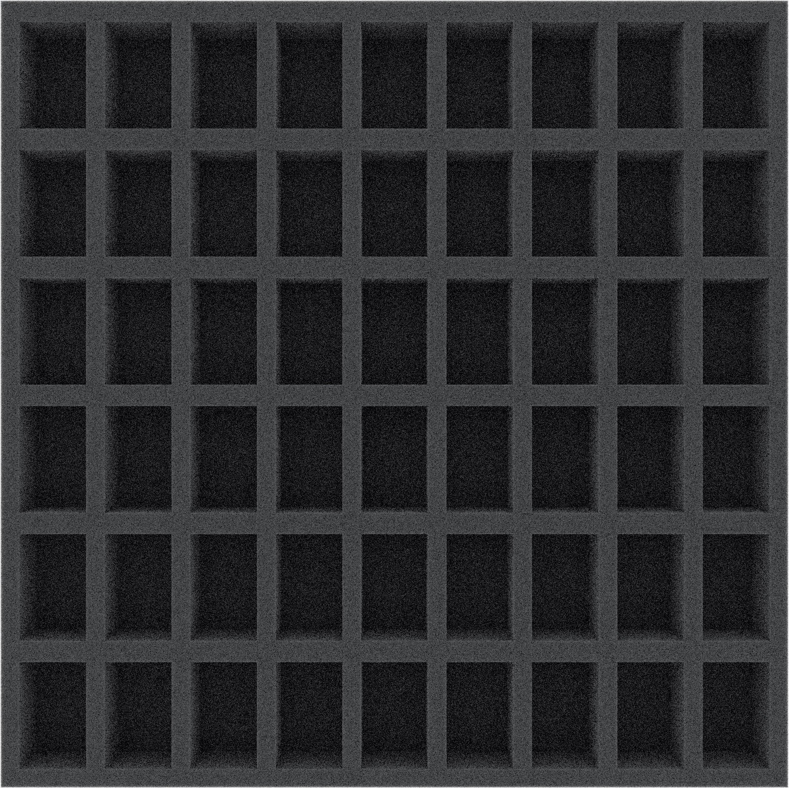 Plateau en mousse avec 54 fentes. Prêt à l'emploi - base en mousse collée de 10 mm. Taille de la fente : (L x H x P) 25 mm x 40 mm x 25 hauteur.