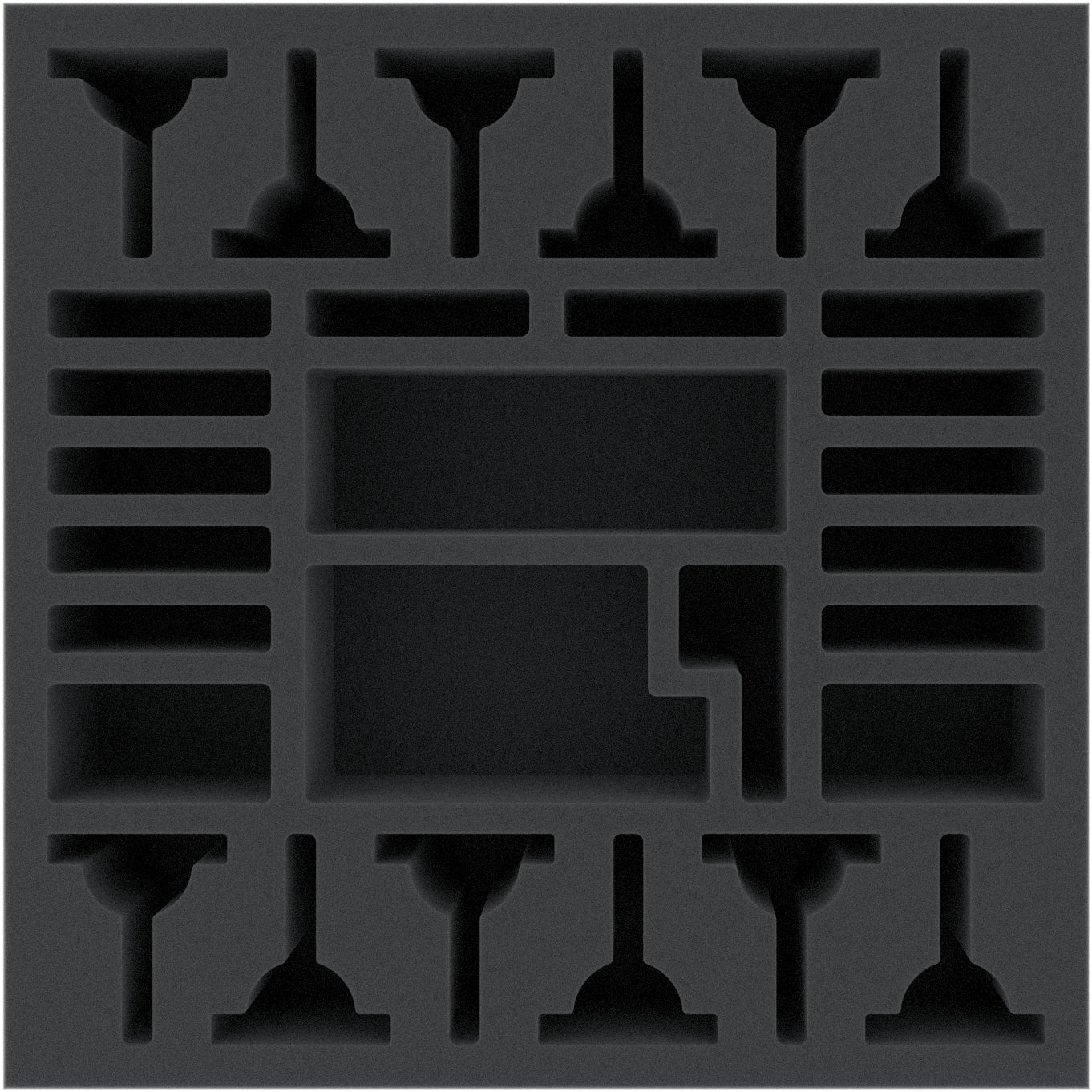 In the compartments of the insert, you have enough space to store your models as well as the BRS Advantage Flying Bases in the perfectly fitting compartments. No more annoying disassembling of the bases, so that the flying sticks do not break off if they lie loose in the game box. If you have painted your miniatures, the soft foam protects reliably against scratches and color abrasion.