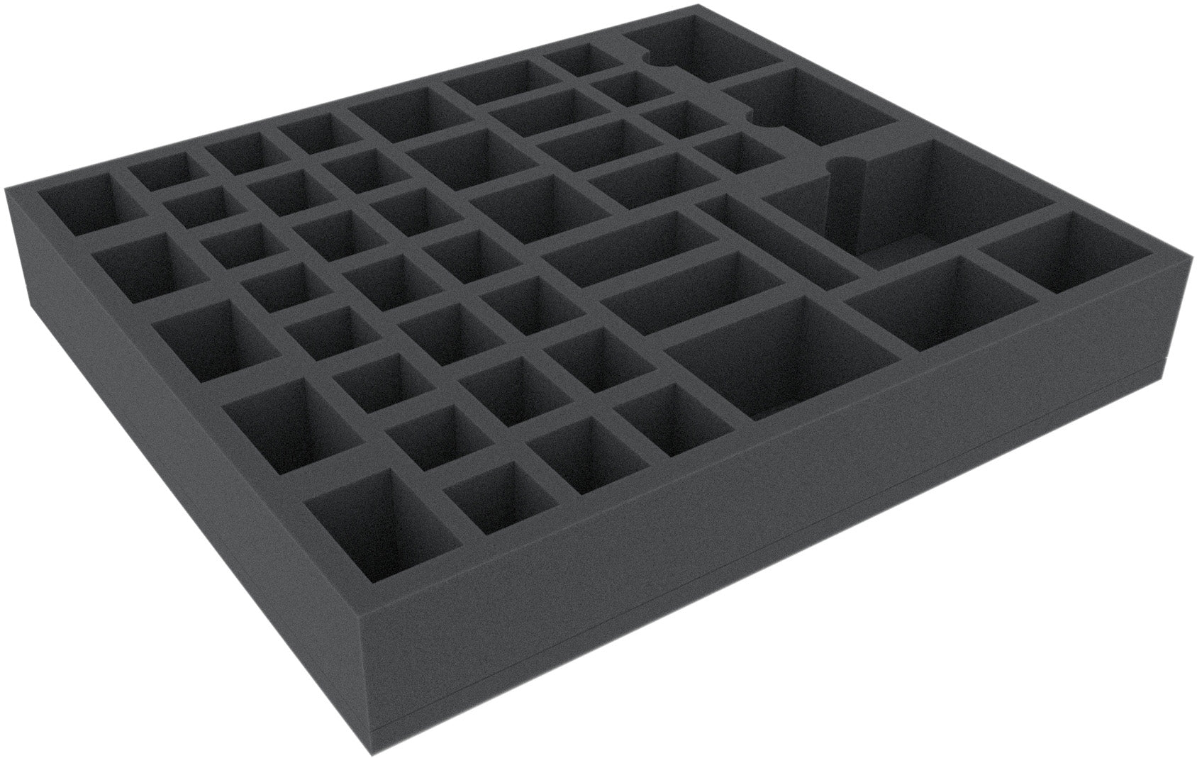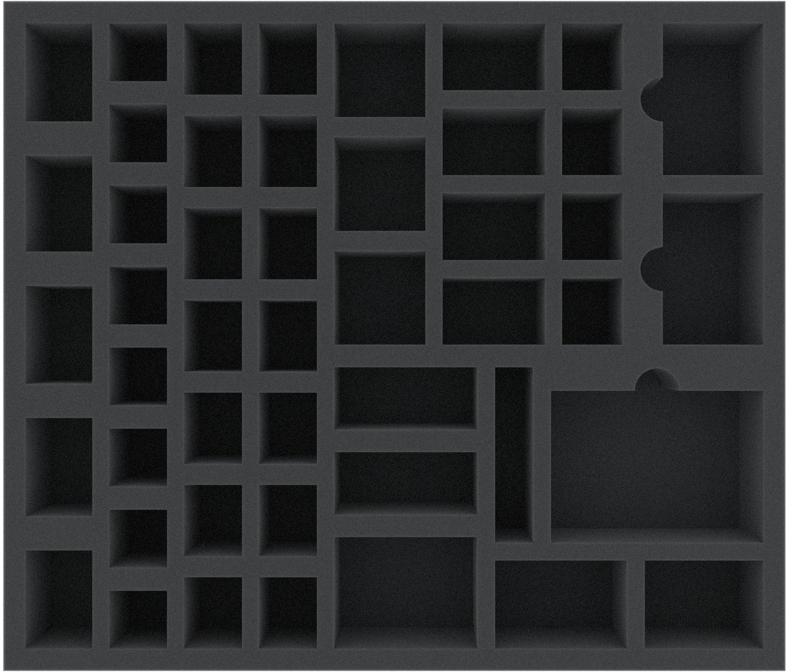 This foam tray has 47 compartments for the safe and orderly storage of tokens, markers, dice, cards, and/or miniatures. It fits many original game boxes.