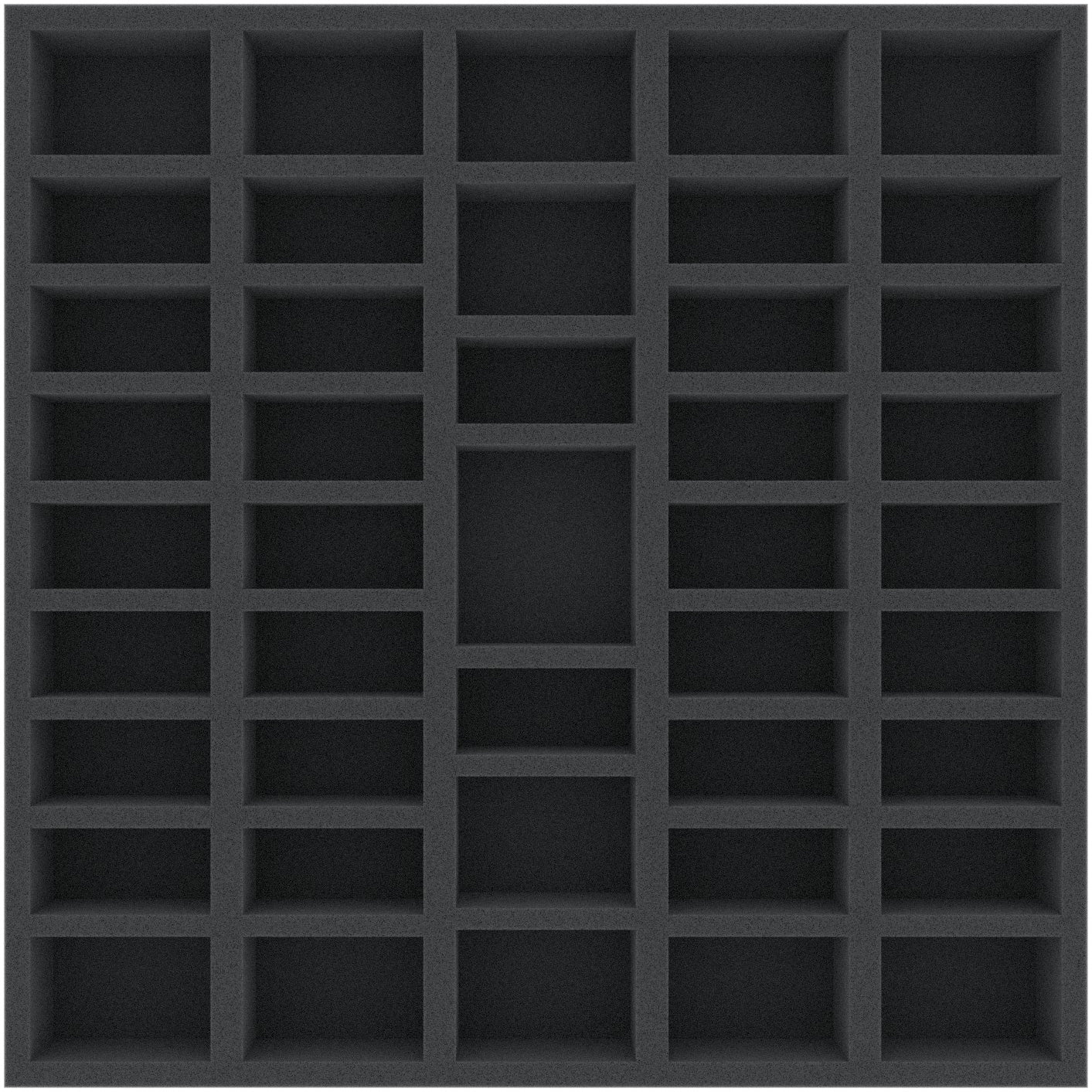 This 40 mm high foam tray is divided into 43 compartments. It is particularly suitable for the safe storage of tabletop and board game miniatures, as well as other fragile models and small parts.