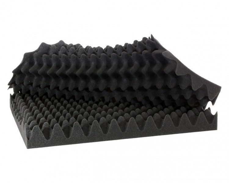 Convoluted foam is a great choice when a lightweight, economic sound absorber is needed, particularly where low and mid range frequency sound absorption is required. Ideally suited for cabinets, guards, walls, enclosures, ducts, privacy panels, computer rooms and party rooms.