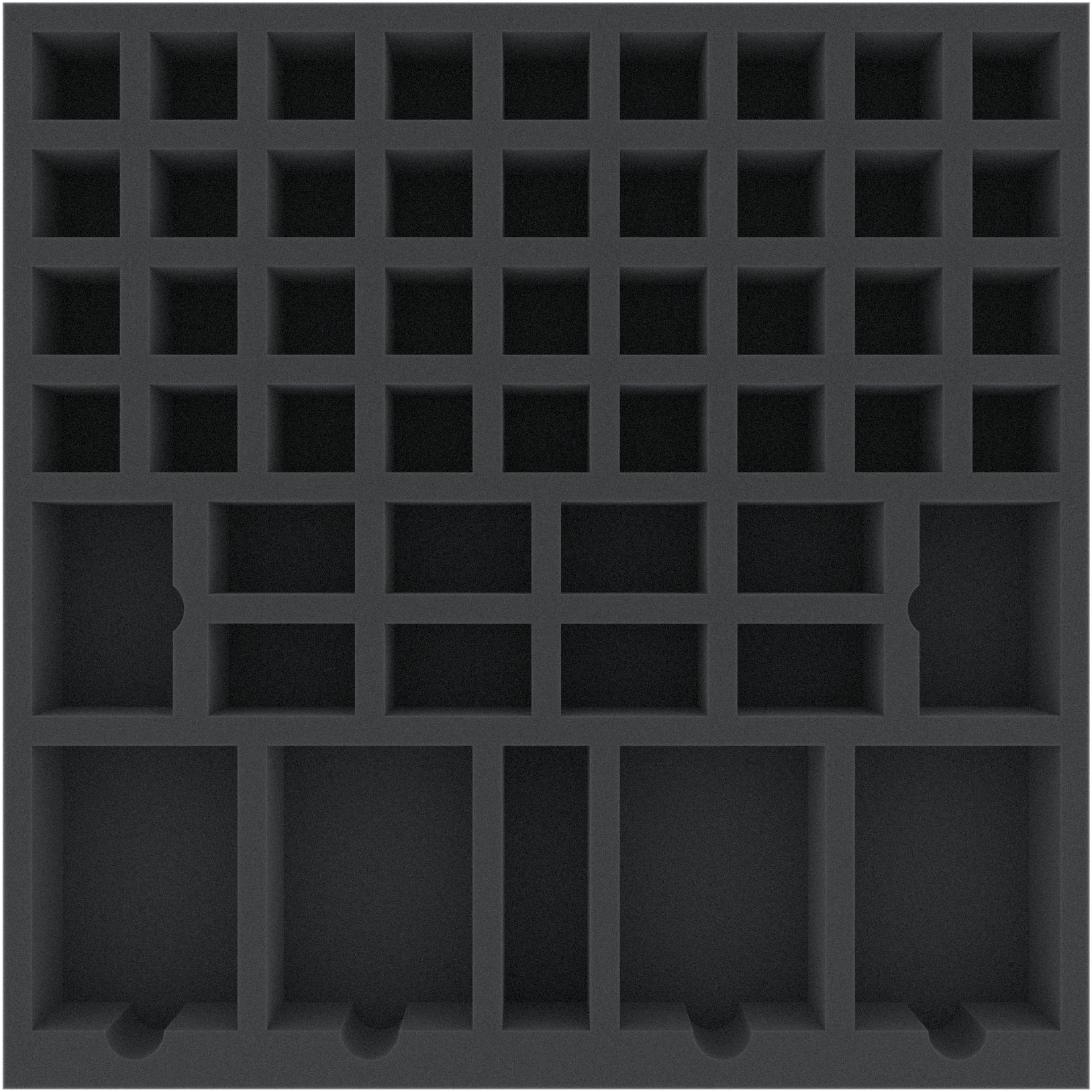This foam tray has 51 compartments for the safe and orderly storage of miniatures, cards, dice and tokens.