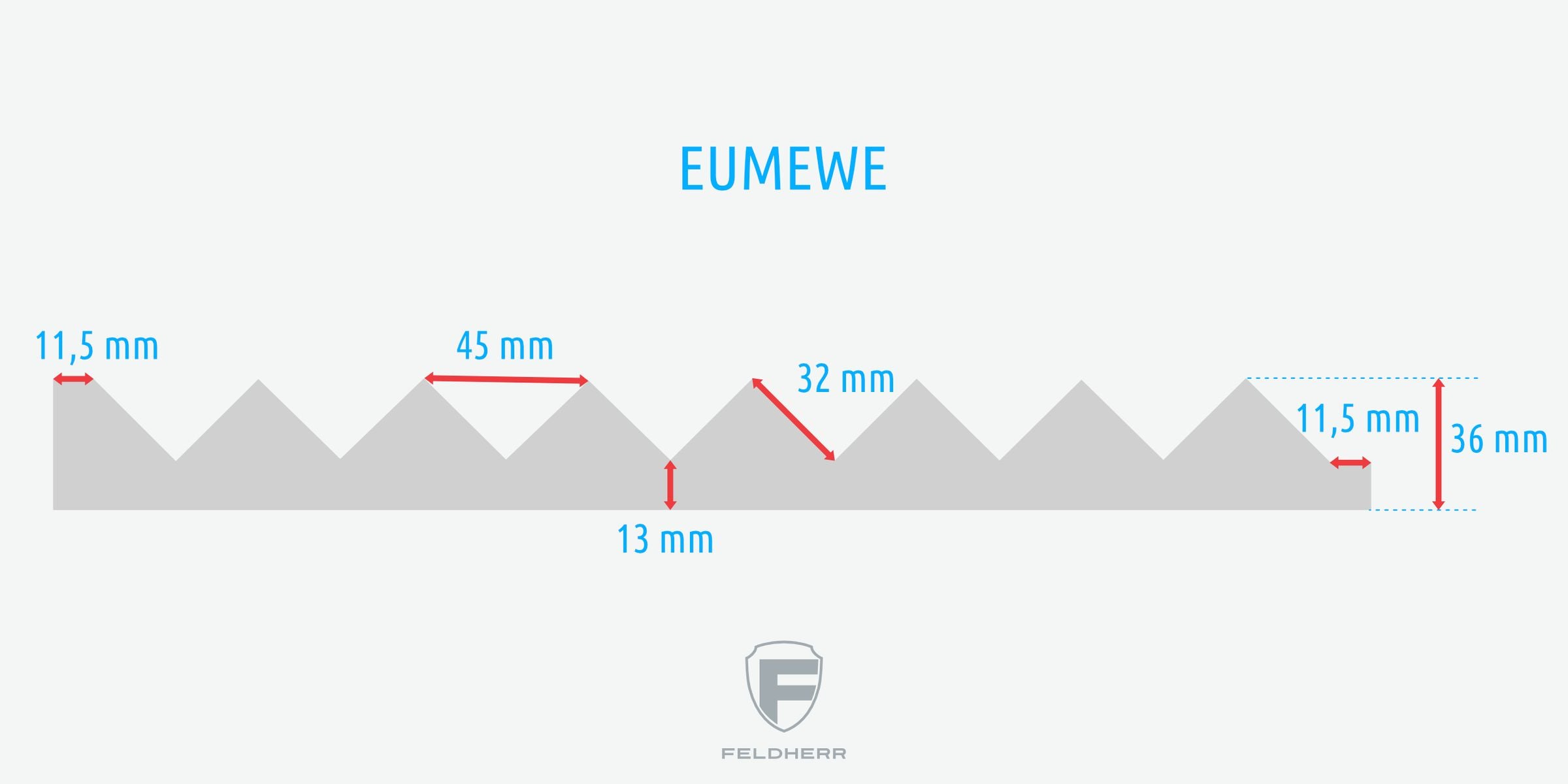 - bottom to bottom of the valley approx. 13 mm