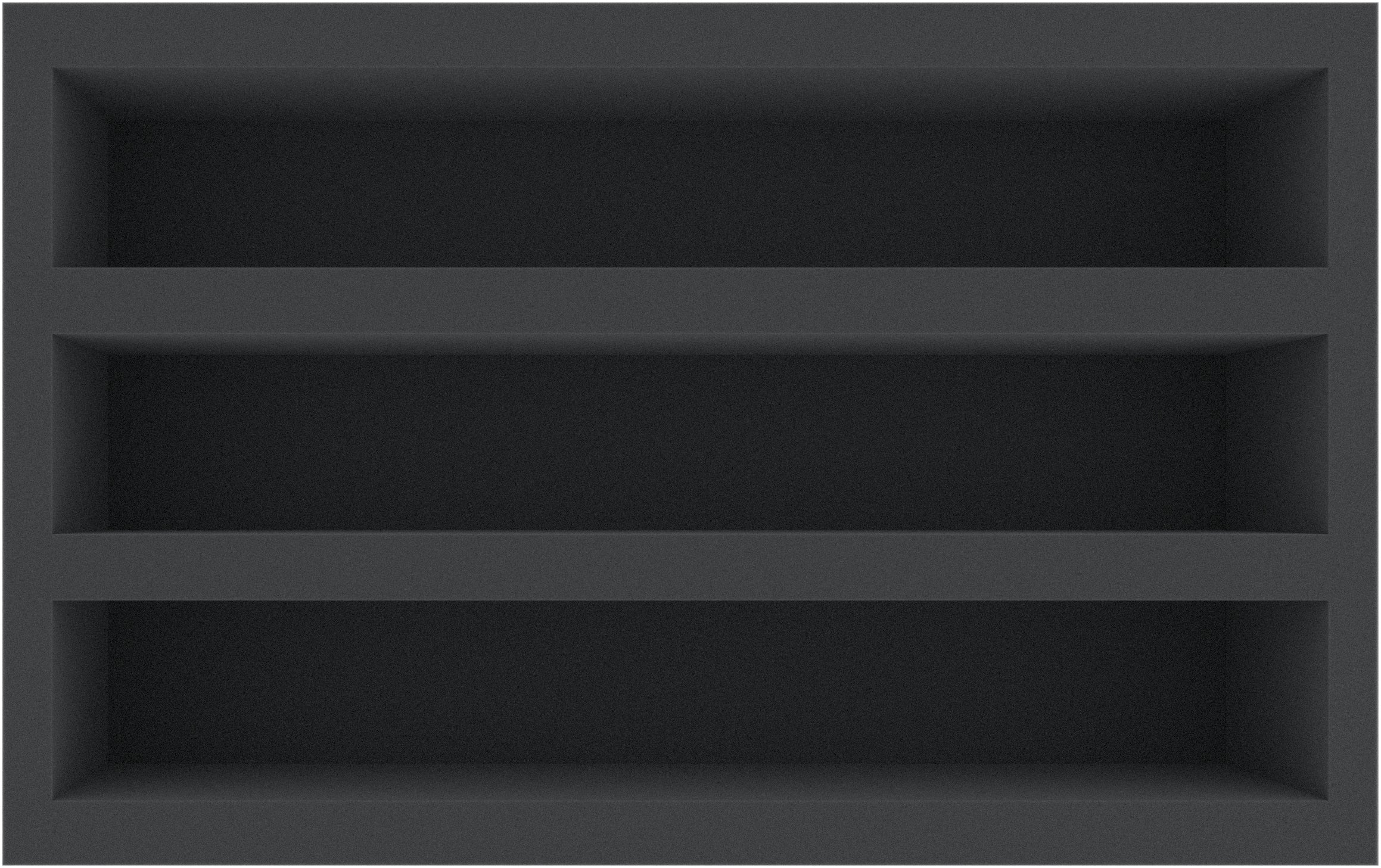 The Double-Size foam tray has the dimensions: 550 mm x 345 mm x 115 mm total height (105 mm usable height + 10 mm foam base).