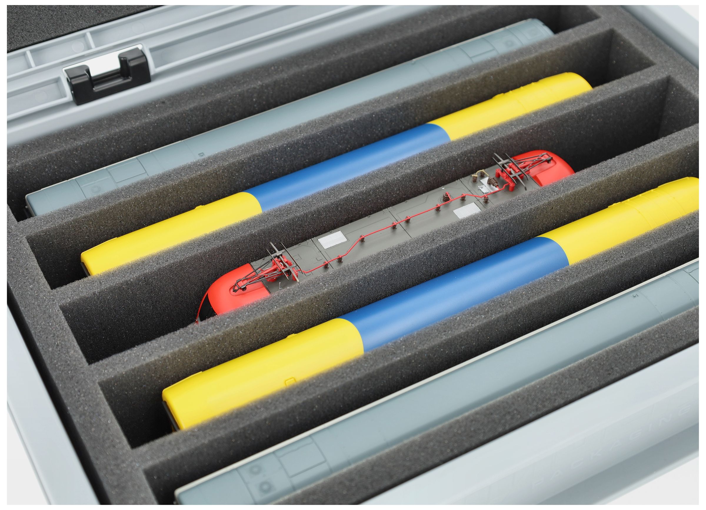 - 5 compartments - foam insert for upright storage of locomotives, wagons and vehicles