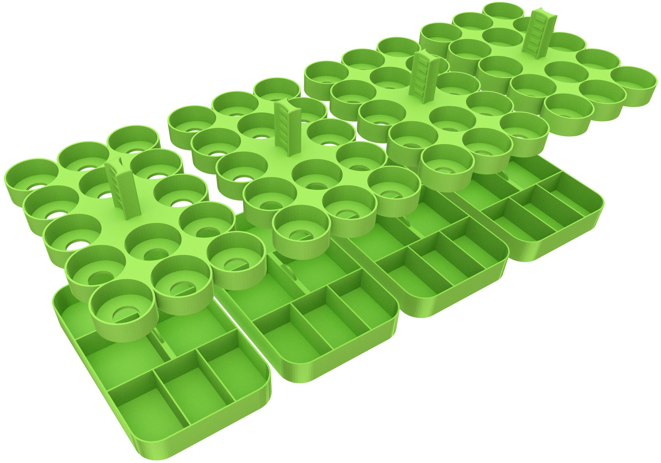 - The four sorting boxes / token trays with six compartments each are ideal for storing game and hobby material.