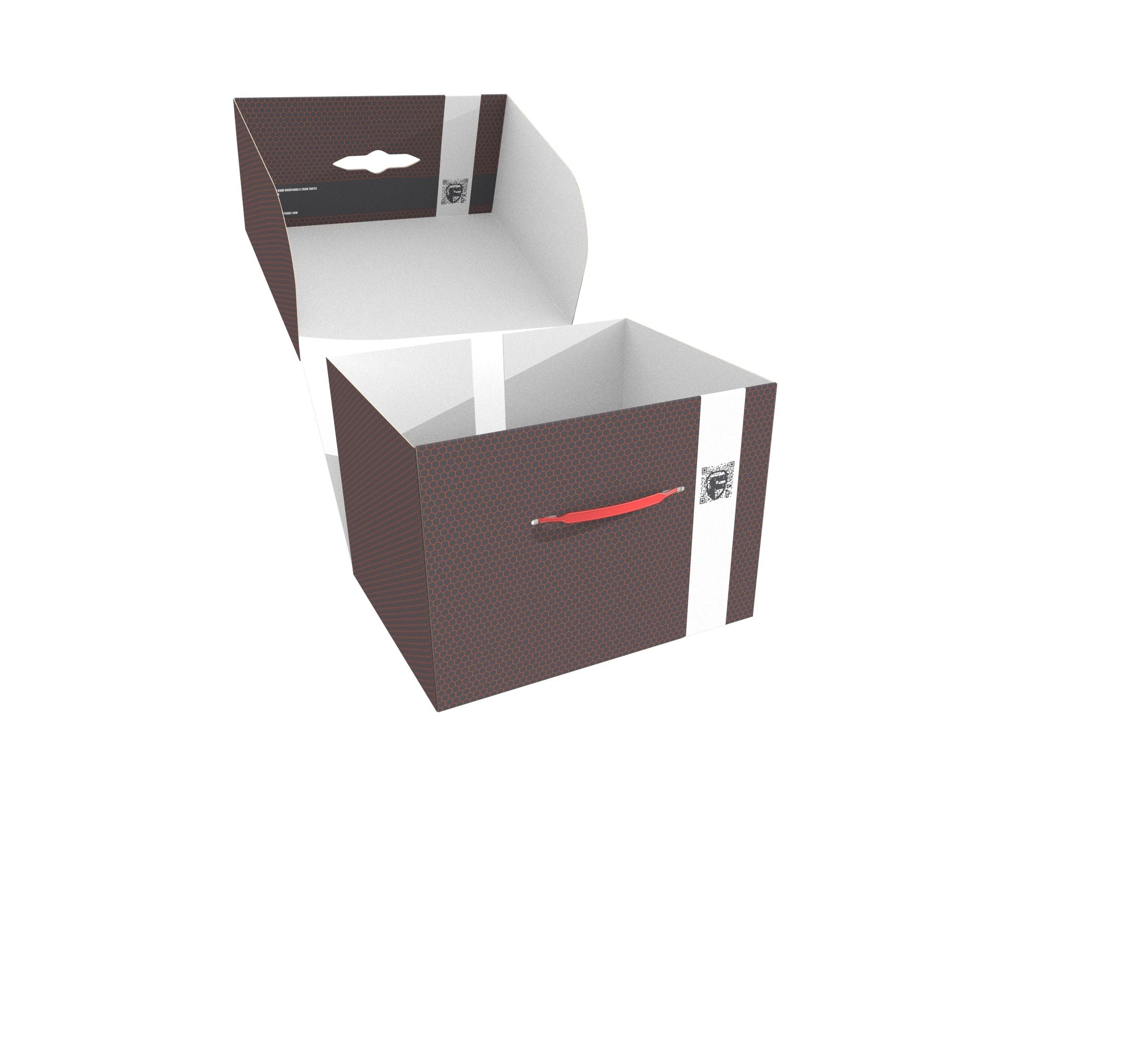 The Storage Box FSLB055 is made of coated, double-walled cardboard. This makes it not only pleasantly light but also particularly tear-resistant and stable. With the matching foam trays, miniatures, game material, and other small items can be stored safely and dust-protected. Due to the flat and compact shape, it can also be easily transported.