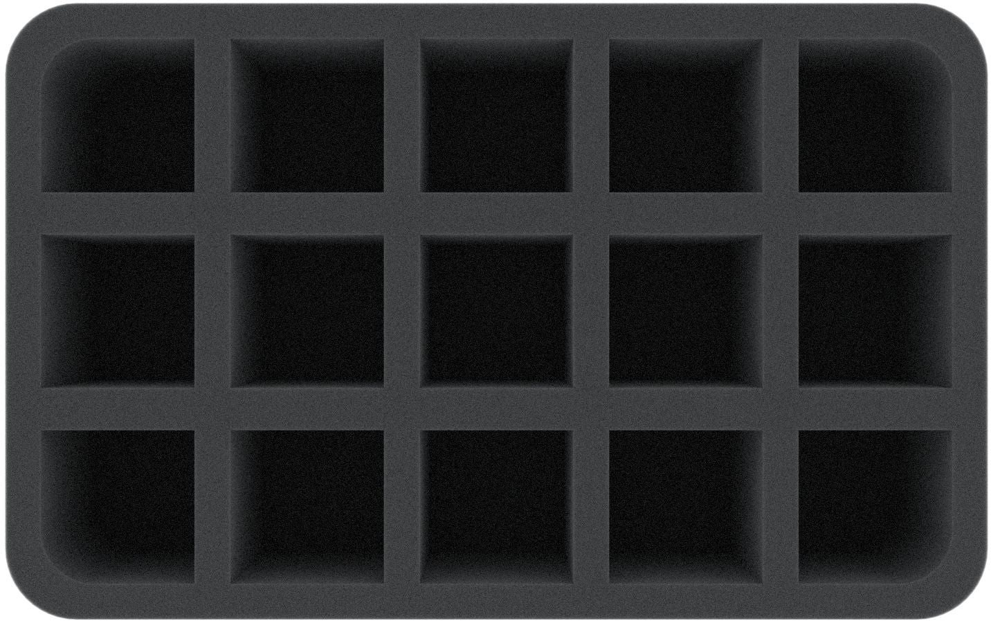 - 1 Half-Size foam tray with 15 compartments for standard infantry miniatures on up to 40 mm base (HSMFAG080BO)
