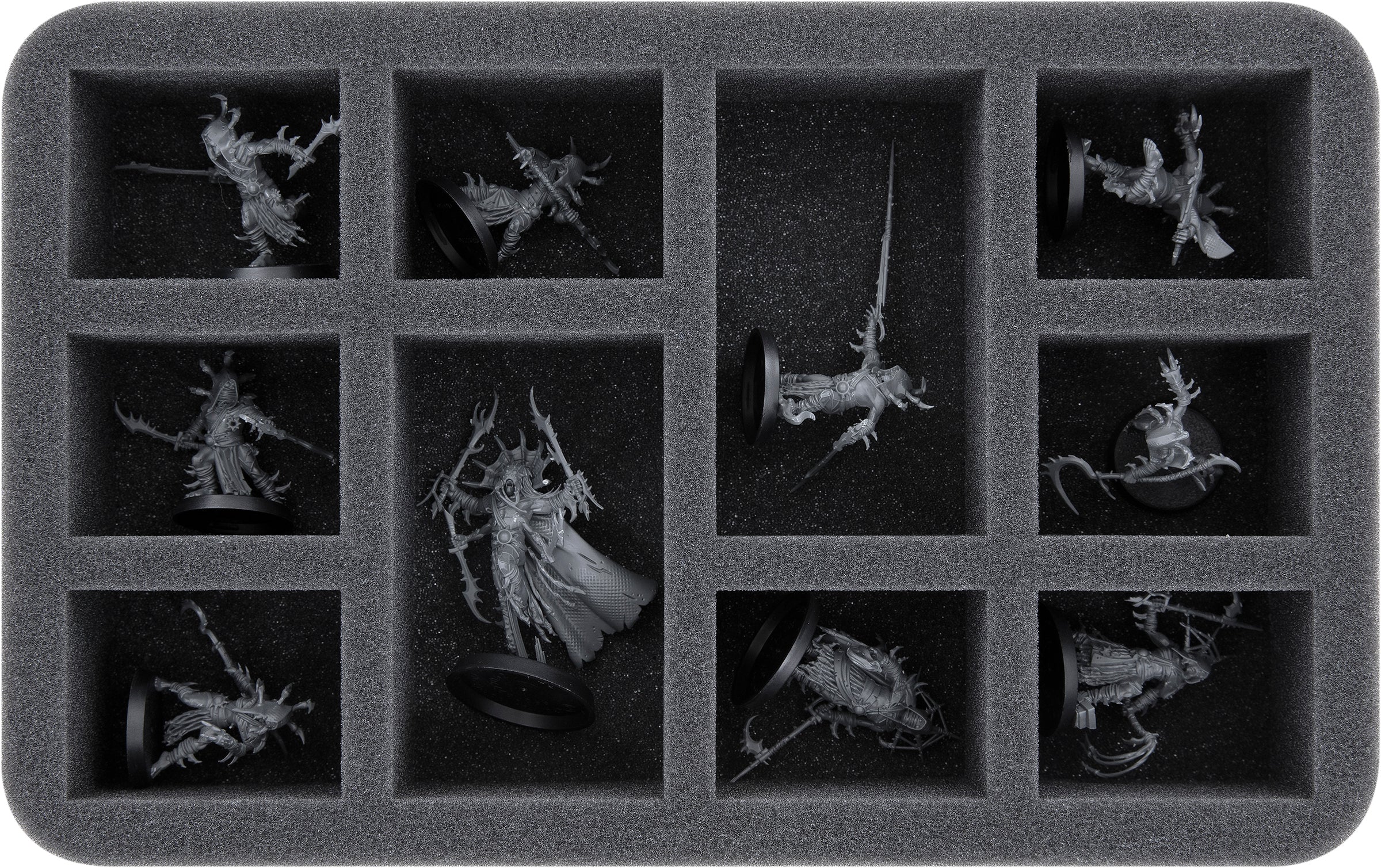 Custom-fit compartments made of soft foam reliably protect your miniatures from damage and also ensure that your painted units arrive safely at the tabletop without scratches.