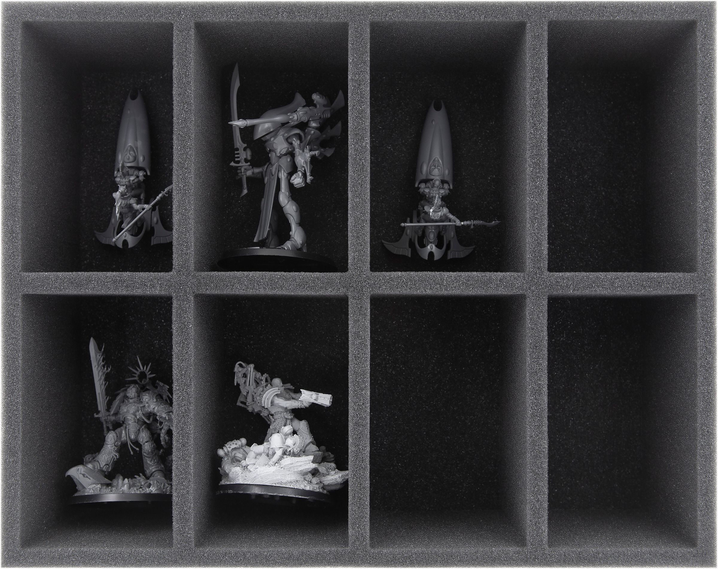 - 1 foam tray with 8 compartments for large miniatures (FSMEFC090BO)