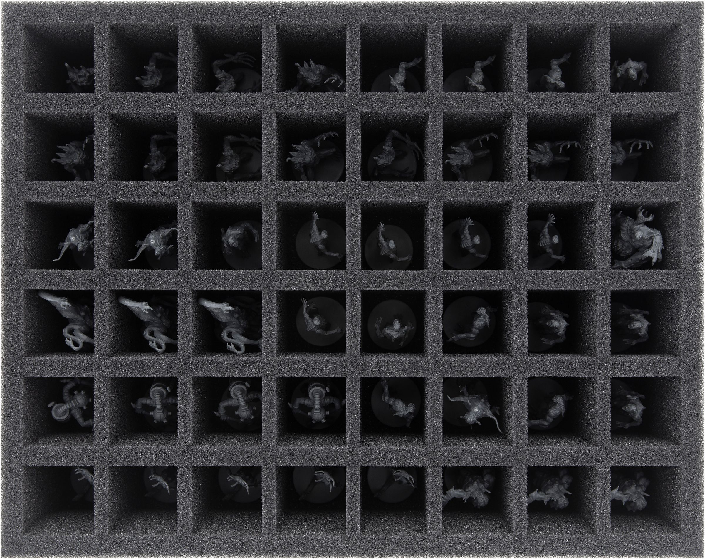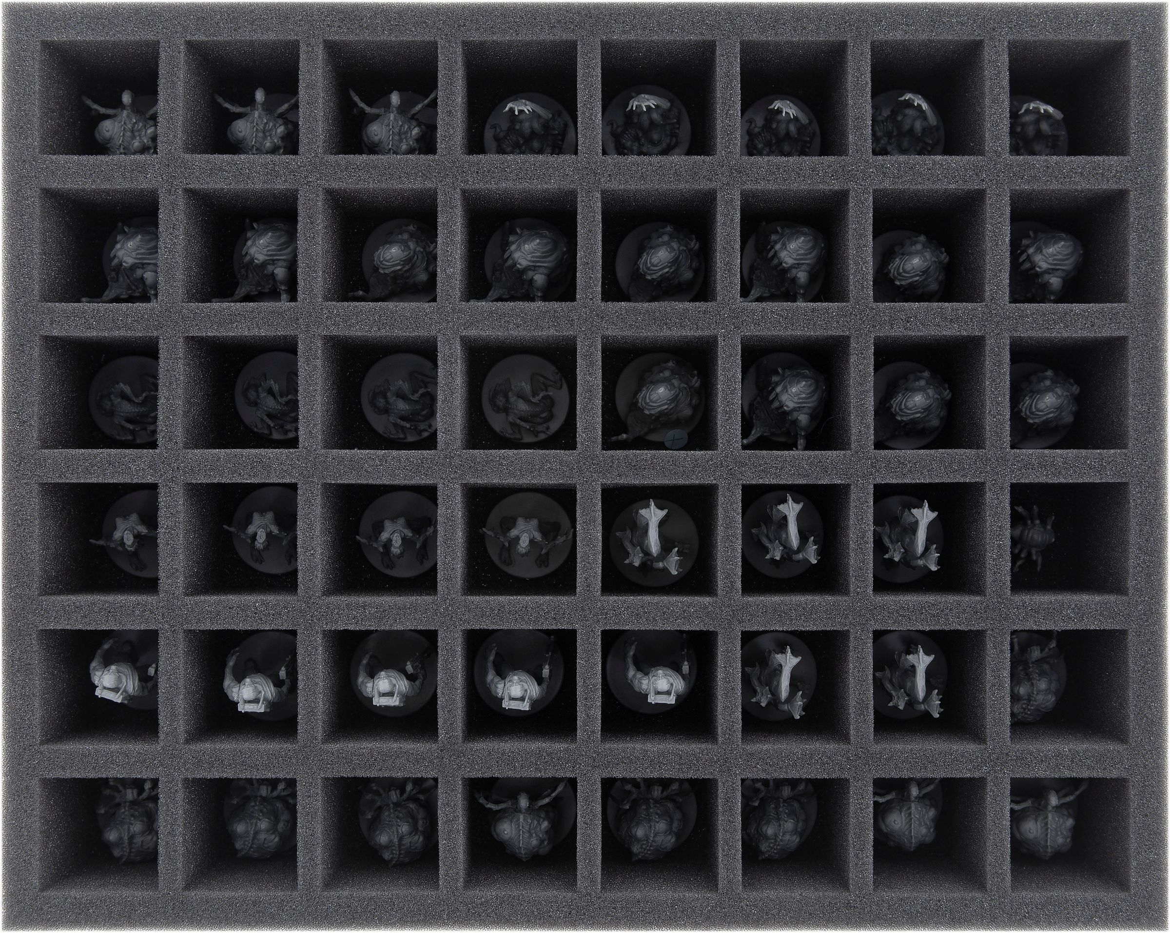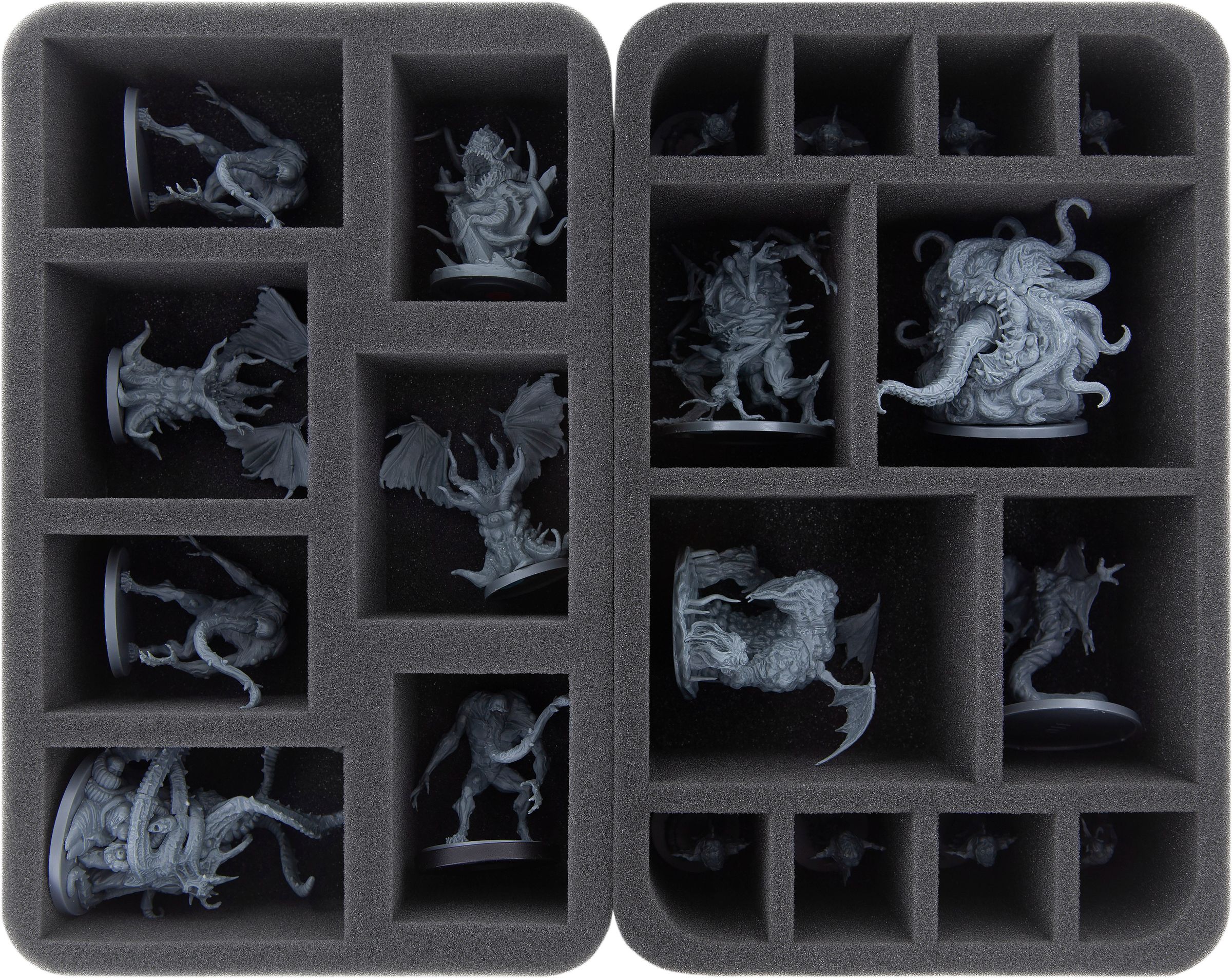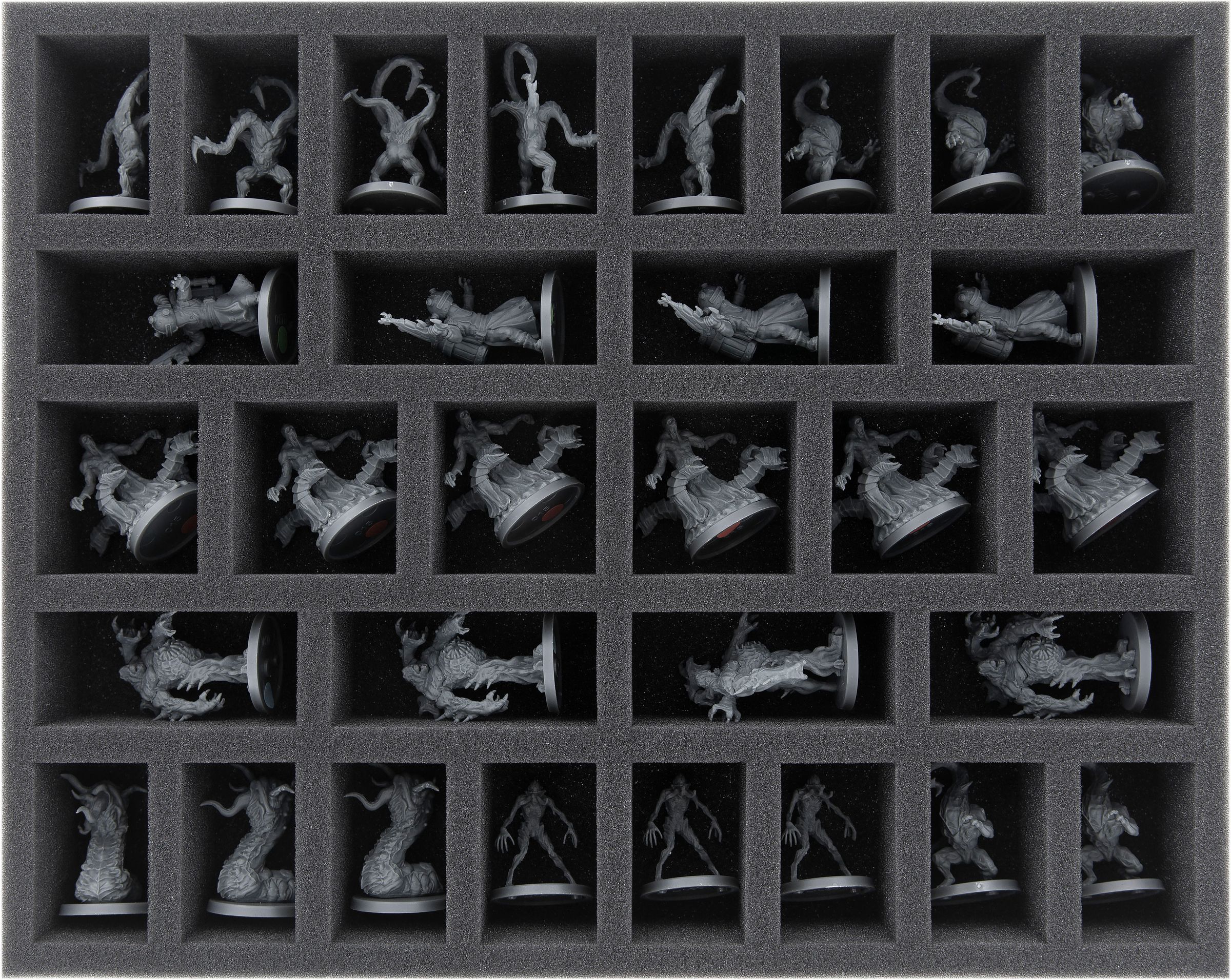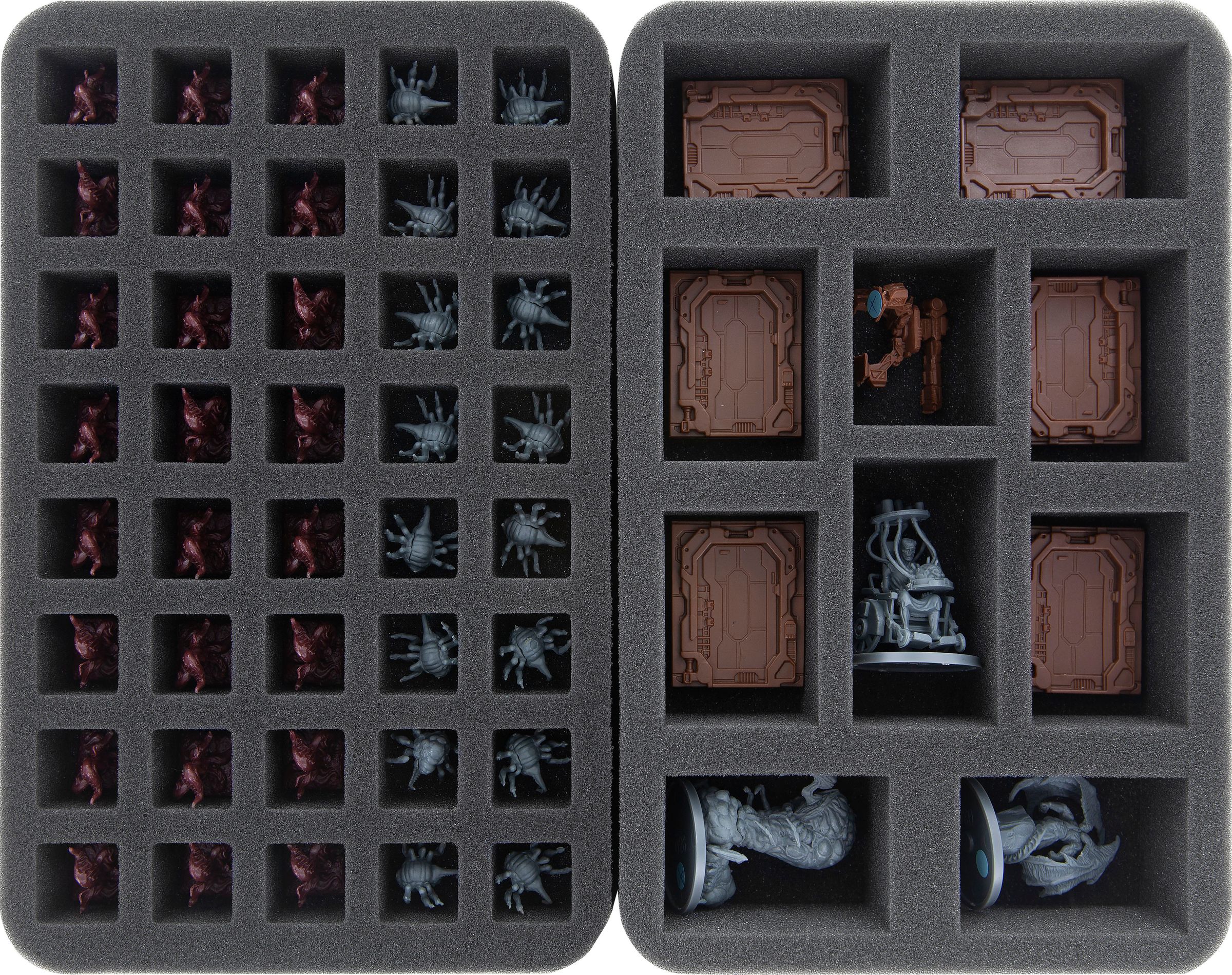 Whether Devourer of Worlds, David and Pris or Mutilation – your miniatures are safe in the fine-pored Feldherr foam. Each miniature gets its own, fitting compartment which prevents the figures from sliding around. If you painted your models you can thus be sure that the color remains unharmed. Of course, the soft foam also reliably protects delicate parts from incurring damage – Atrocity keeps its tongue, Unbound its tentacles.