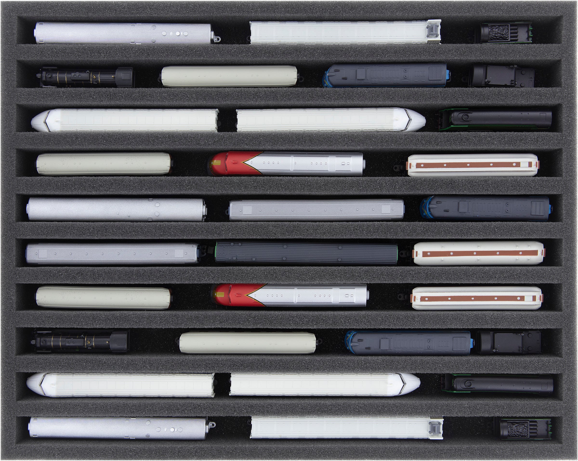 - 1 Full-Size foam tray with 10 slots for models in Z gauge - in lying position (FS035A010)