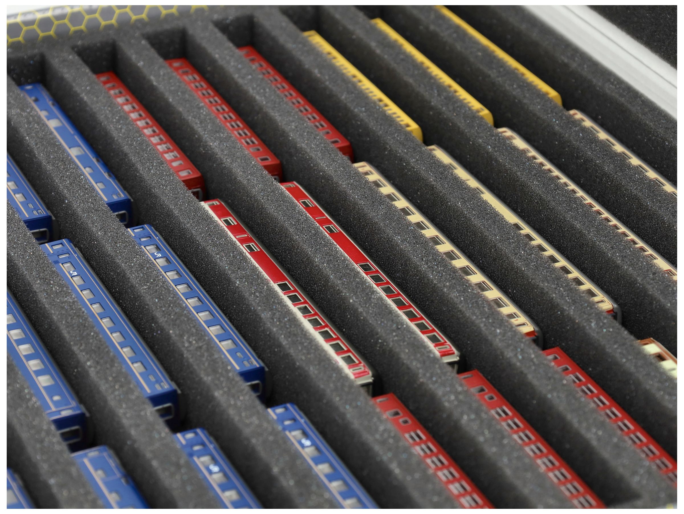 Several trains and carriages can be stored next to each other in one compartment. In order to prevent collision or unintentional coupling, we offer suitable foam spacers (HS025A002) to separate your vehicles.