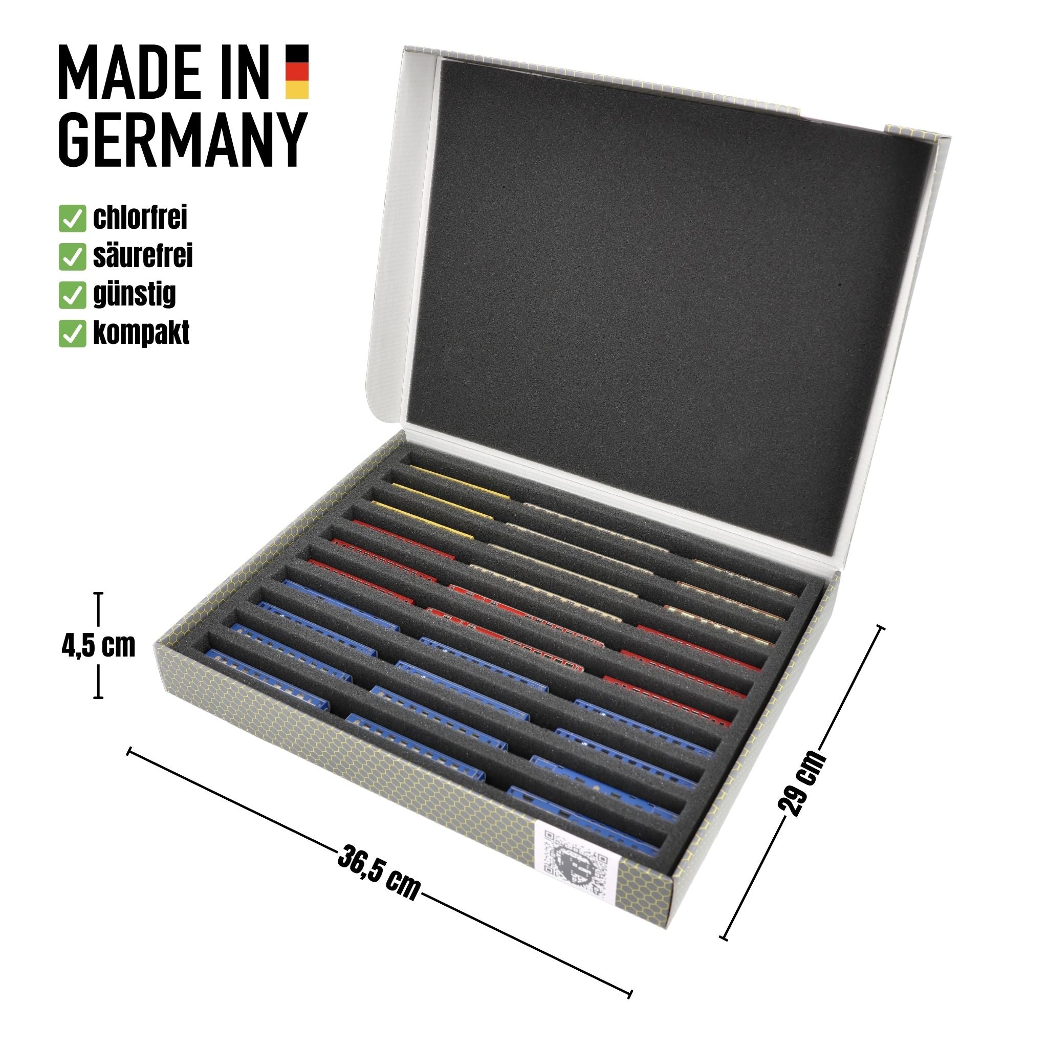 Stored properly and transported safely. With this Feldherr Storage Box including Full-Size foam inlay for model railways in Z Gauge your models are safe.