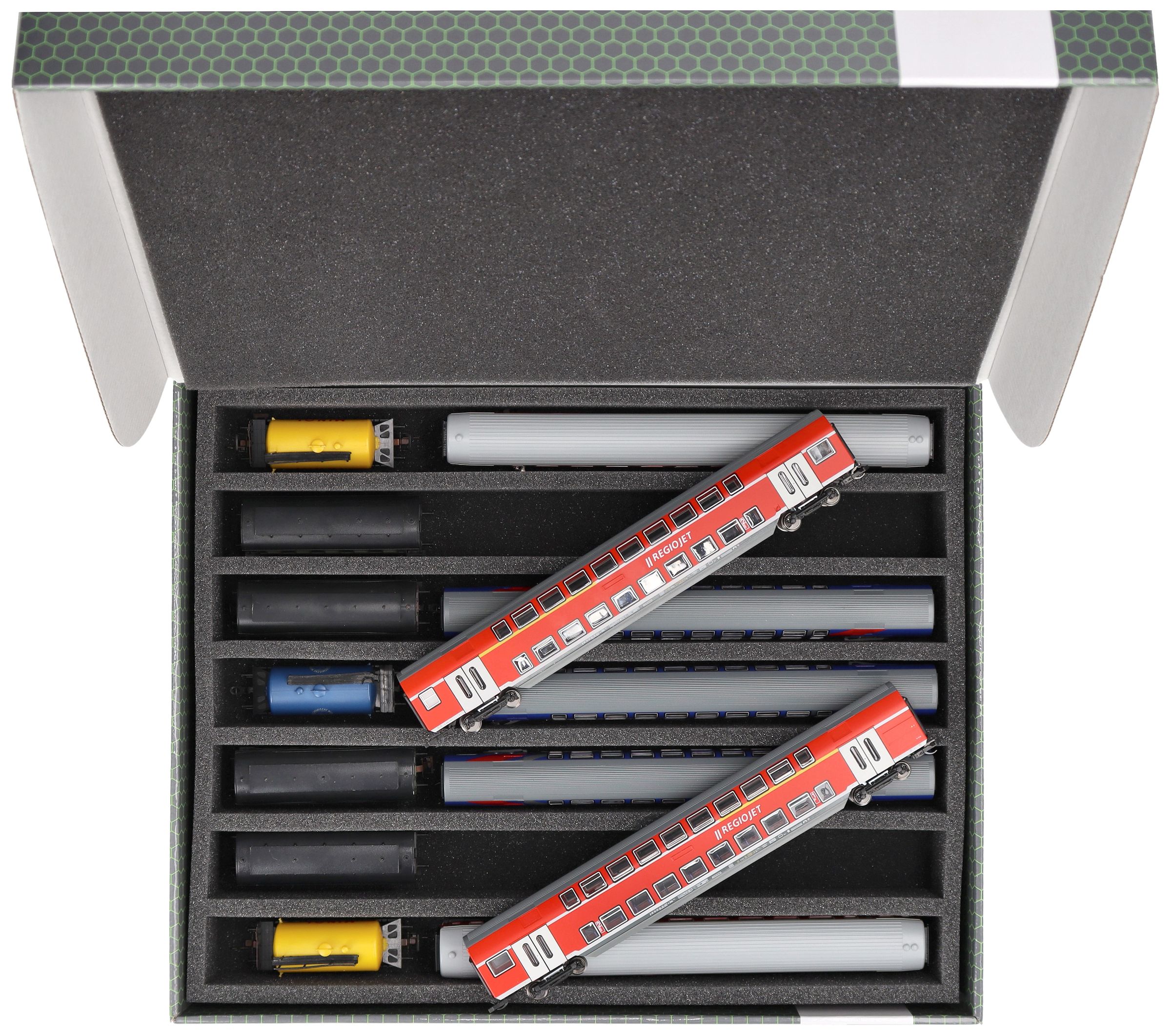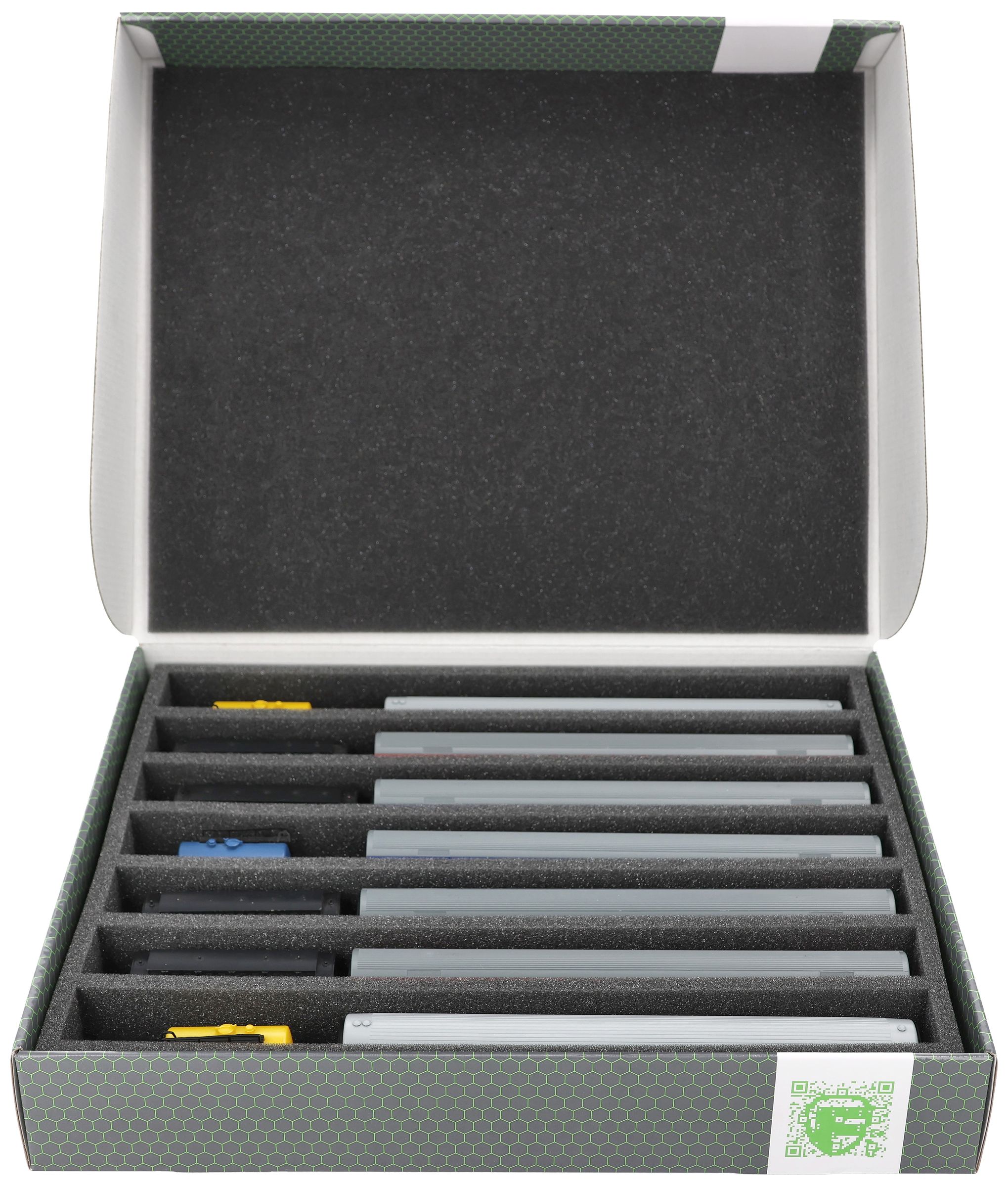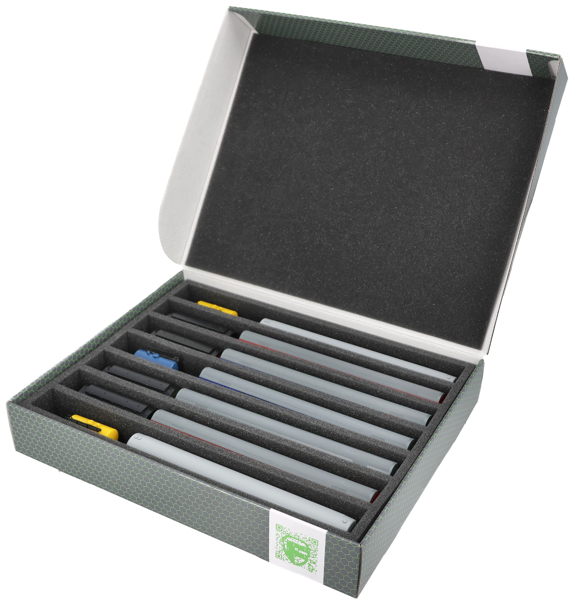 The models are thus safely stored all around and permanently protected by the high-quality foam against damage and wear and tear such as scratches and flaking paint.