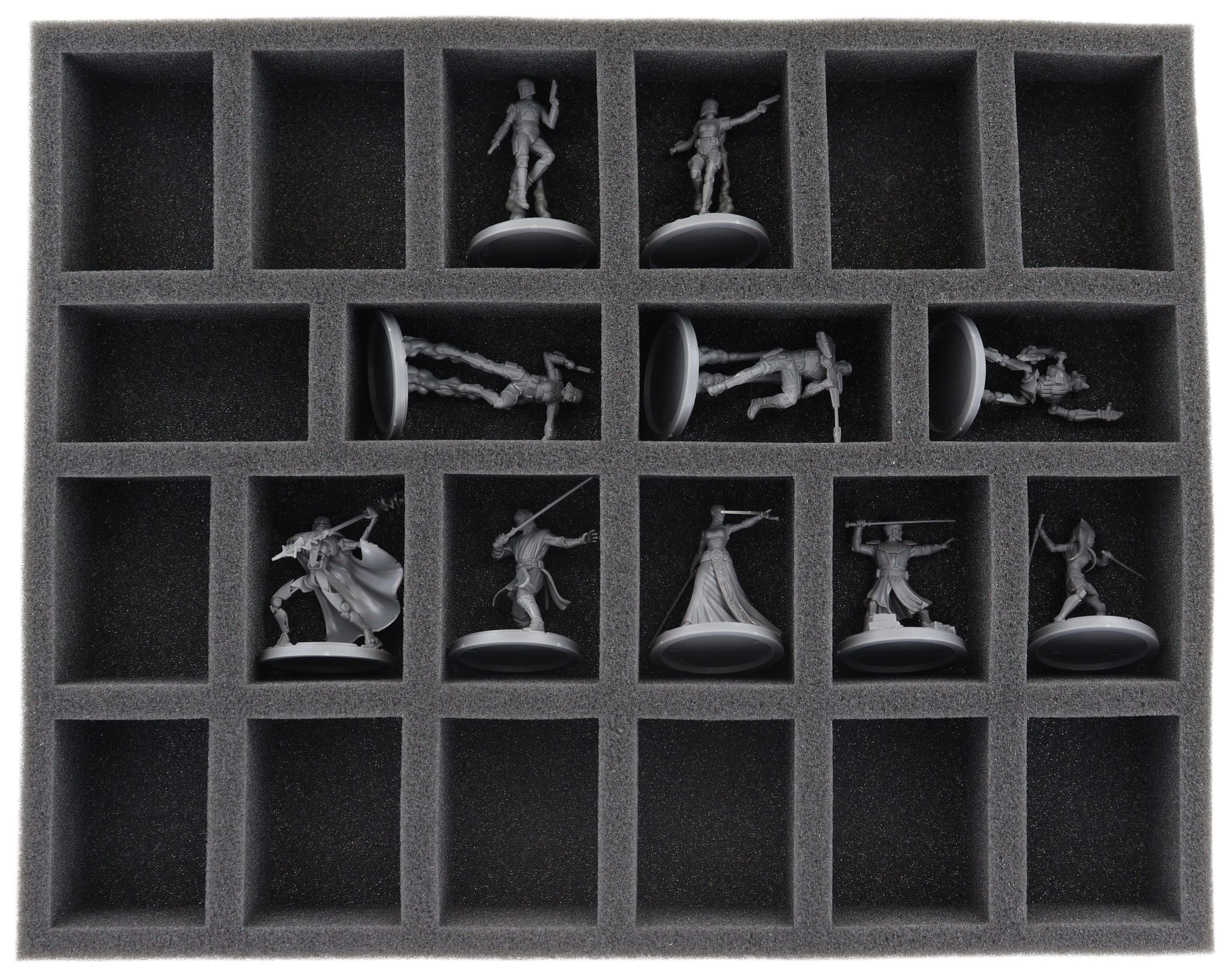 • 1 Full-Size foam tray with 22 compartments for bulky miniatures on 40 mm bases like Anakin Skywalker, Asajj Ventress, Battle Droids, and models with similar dimensions (FS050A112)