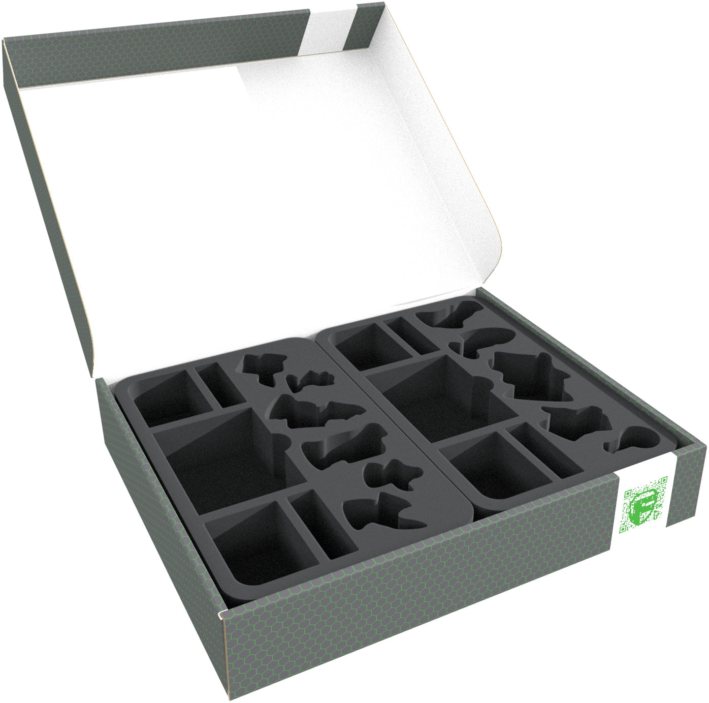 For clear and safe storage of miniatures and game material, the inserts are divided into miniature-cut compartments for each model and five compartments for the accessories.