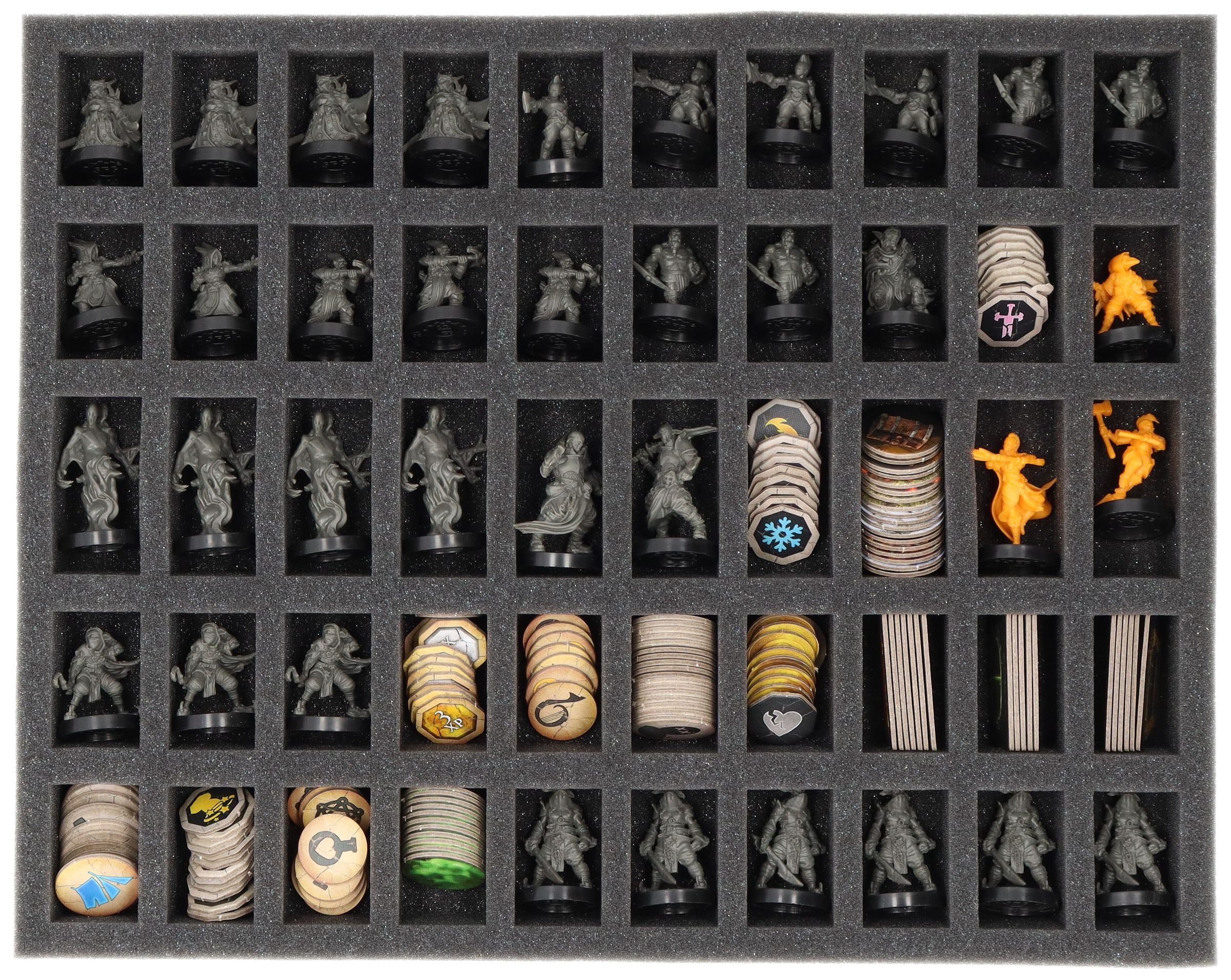 • 1 Full-Size foam tray with 50 compartments for miniatures + tokens (FSEB040BO)
