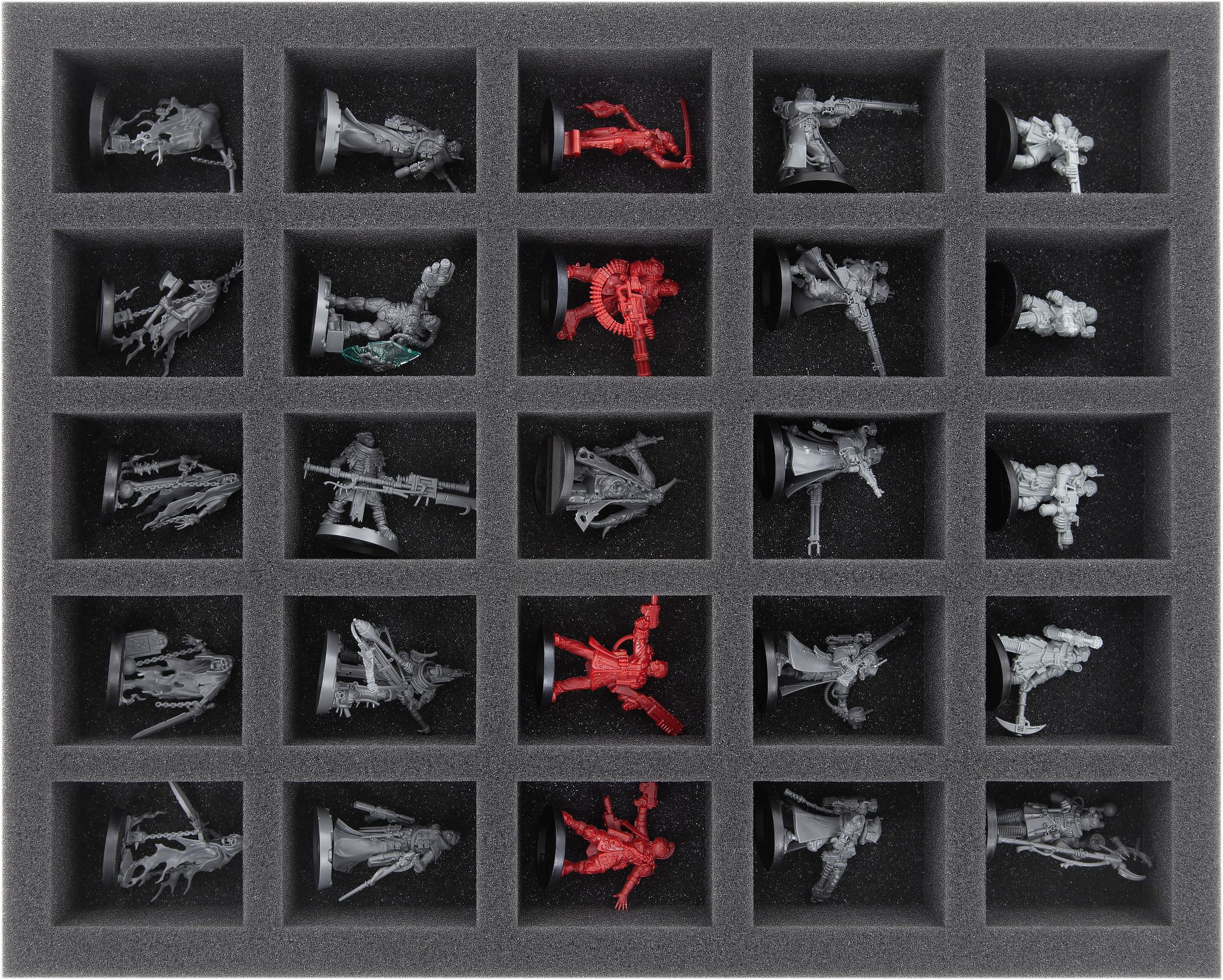 From the insane Escher to the sinister Delaque, all miniatures and each terrain piece get their own custom-fit compartment. The soft, fine-pored foam provides reliable protection for your figures during transport. You don't have to fear scratches and chipping paint on your painted models, nor broken parts.