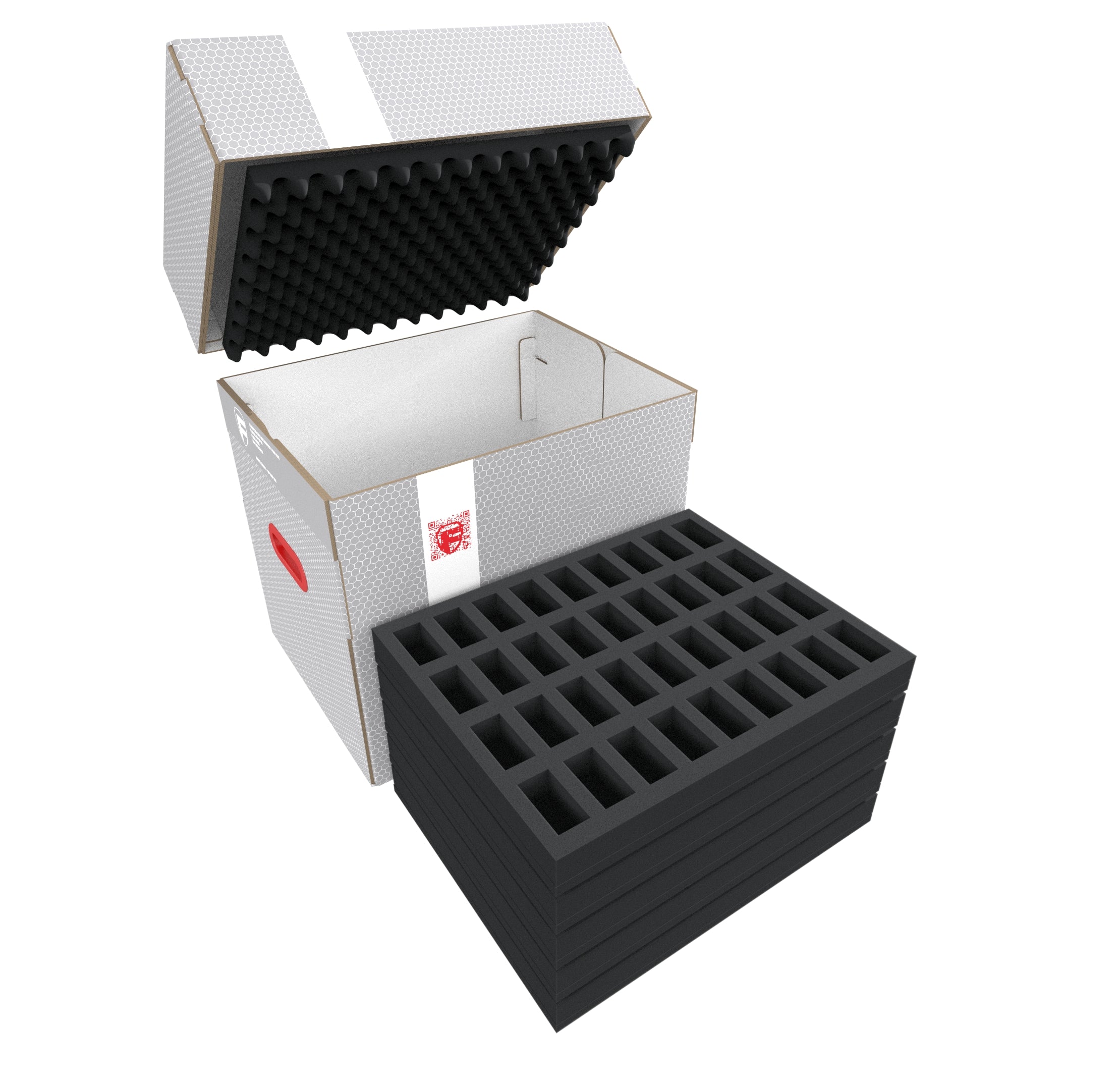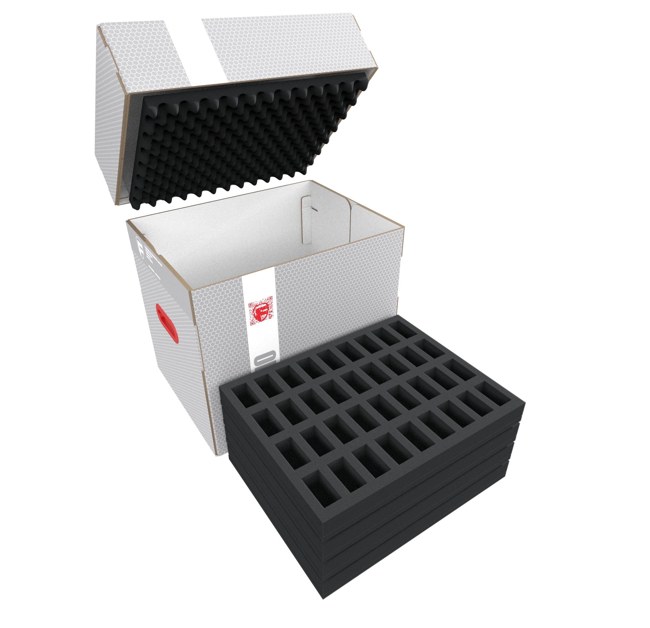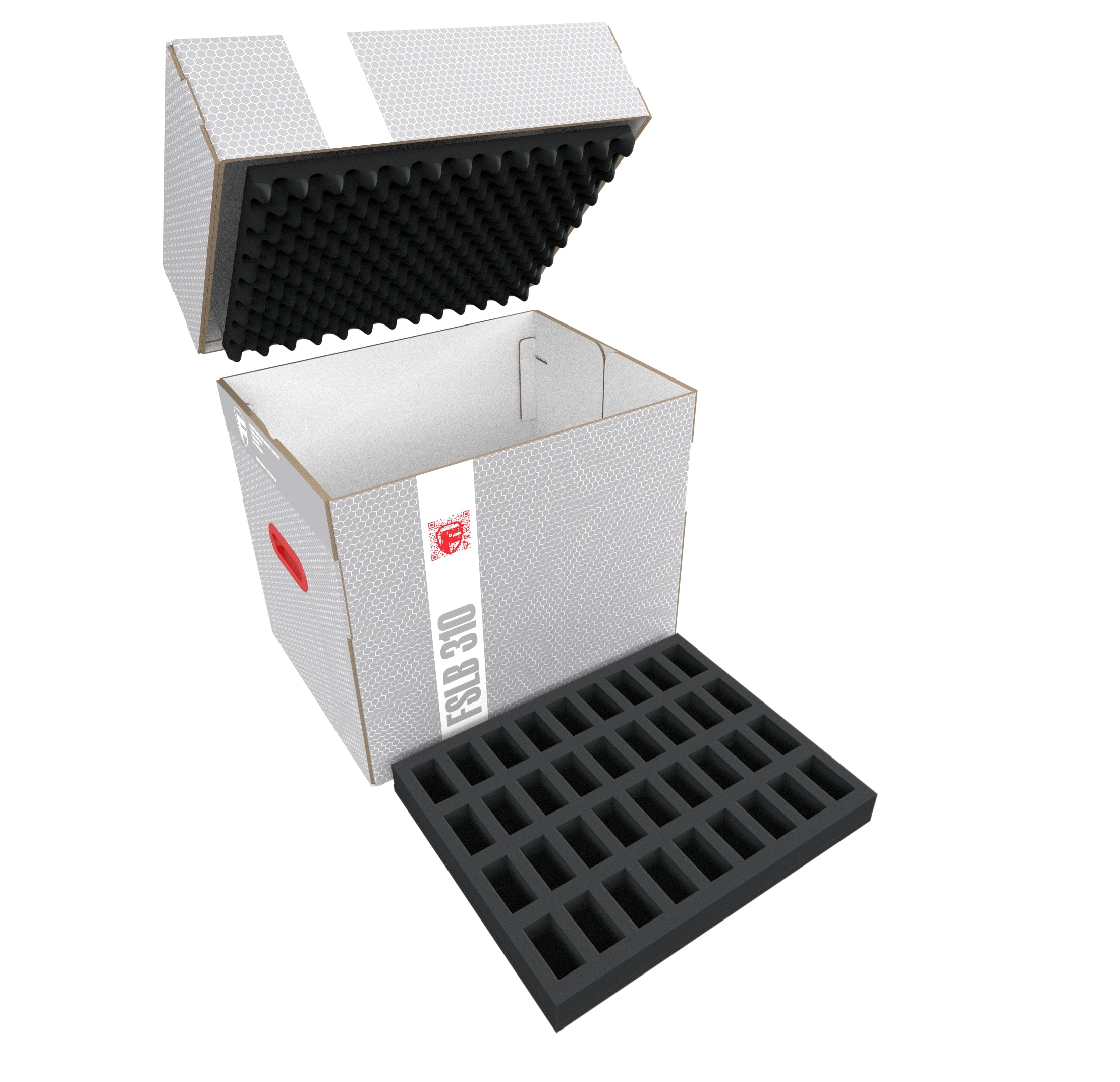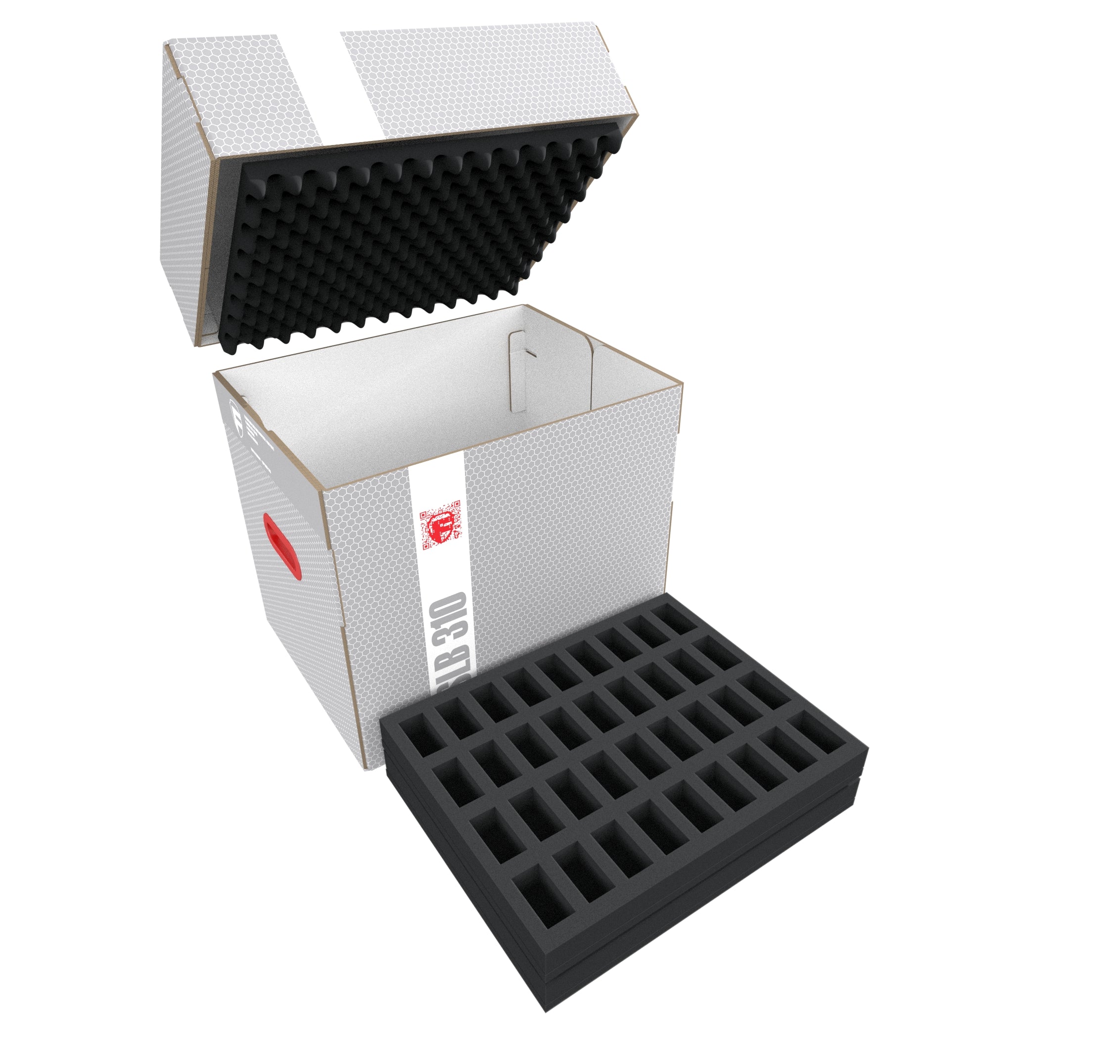 The light, robust Feldherr Storage Box FSLB310 for safe storage and transport of your miniatures. It comes filled with 8 foam inserts for standard miniatures on 25 mm bases, and is therefore ideal for storing your infantry and other classic hero and monster figures from different tabletop and board game systems.