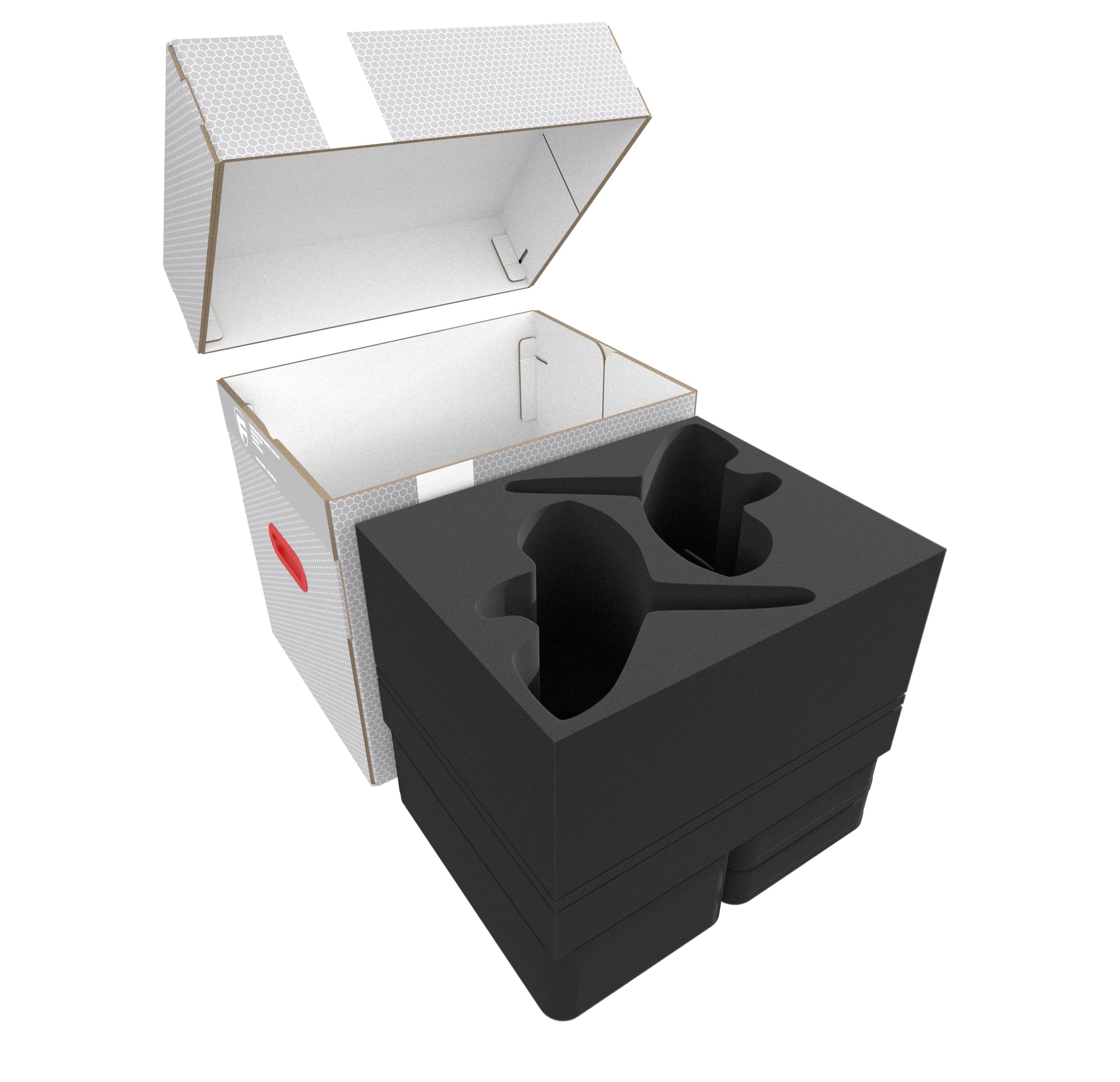 - 2 Half-Size foam trays each with 16 compartments for miniatures (HS040BF05BO)