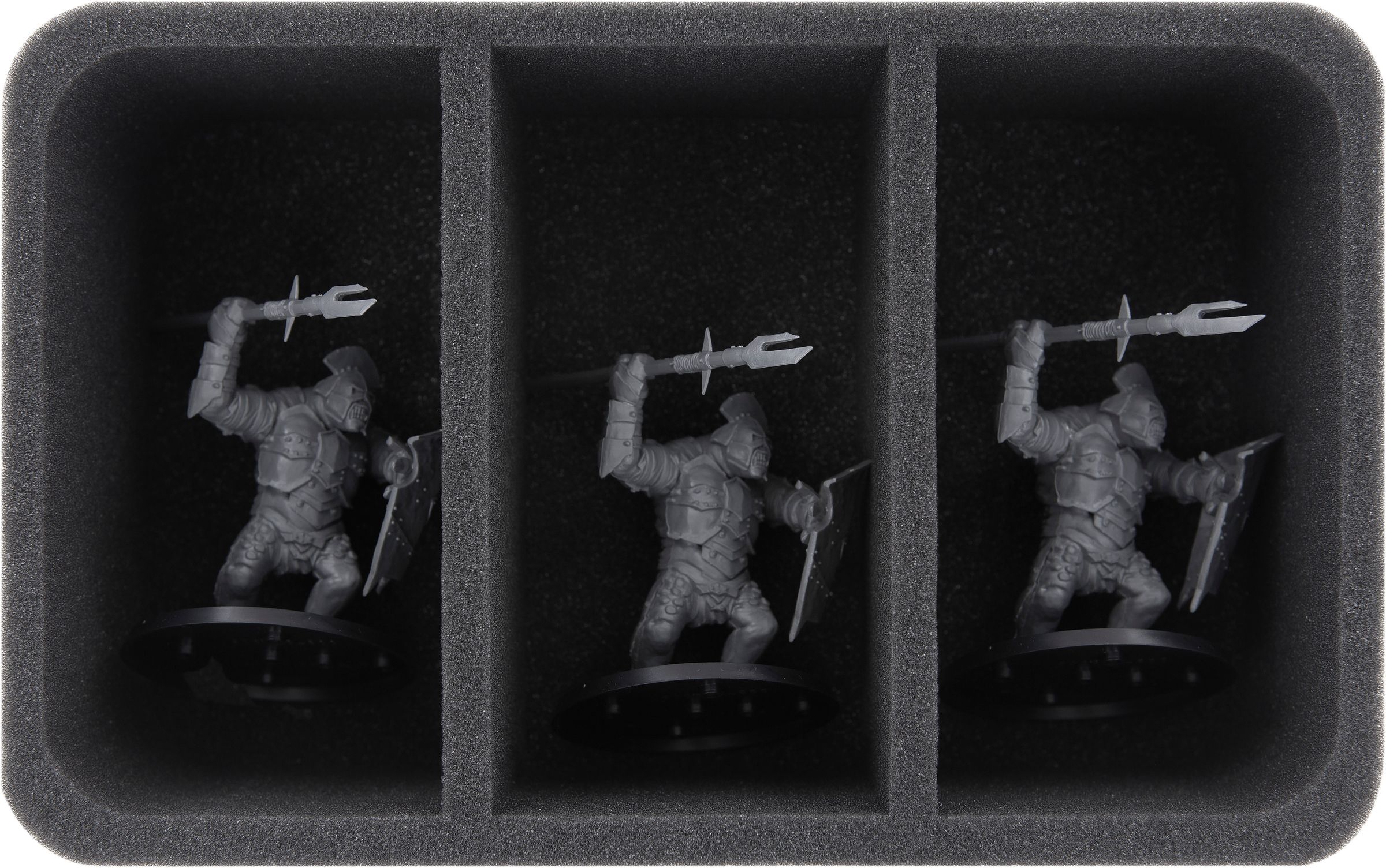 - 1 Half-Size foam tray with 3 compartments for large miniatures (HSDF085BO)