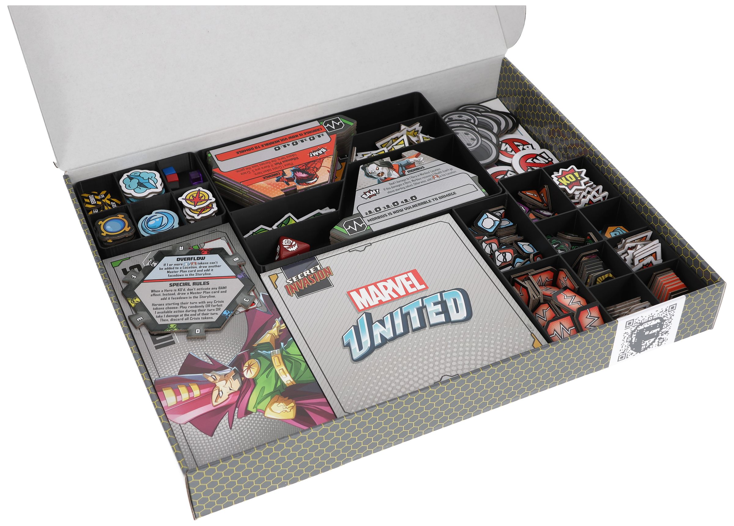 Lucky you, because we are prepared for this not-so-Secret Invasion. And now you are too. Here's the matching Feldherr Storage Box bundle including custom foam inserts and organizer solutions for all your Marvel United miniatures, game cards and all the accessories from the Omniverse Pledge.
