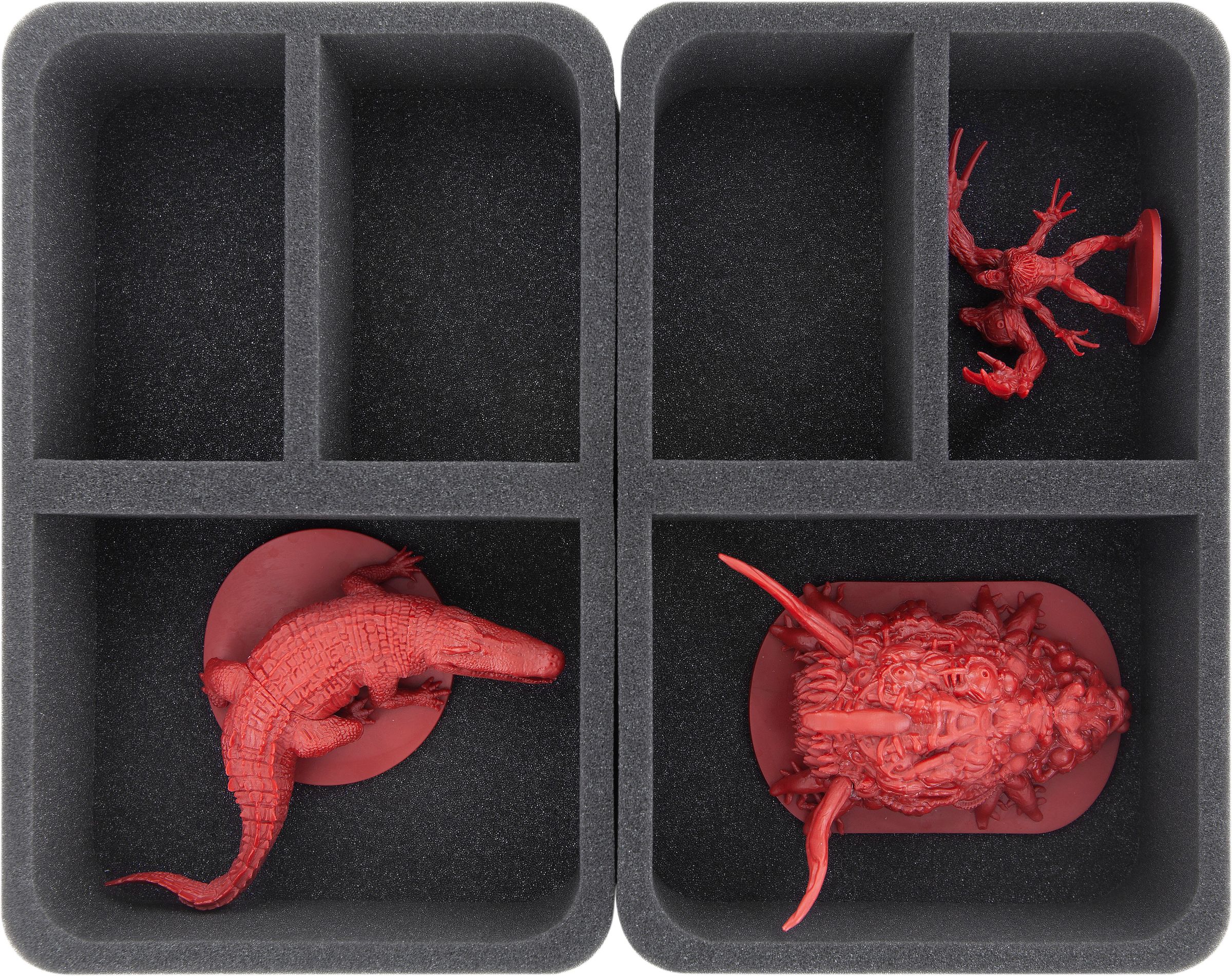For neat storage of the miniatures, the set contains a total of four foam trays. On two Full-Size and four Half-Size inserts, each figure is appointed its own precisely fitting compartment. This prevents them from sliding around and hitting each other during transport. The colors of the painted figures are thus spared scratches or abrasion. The soft foam material optimally protects the fine, sensitive parts, such as claws, weapons or wings, from damage.
