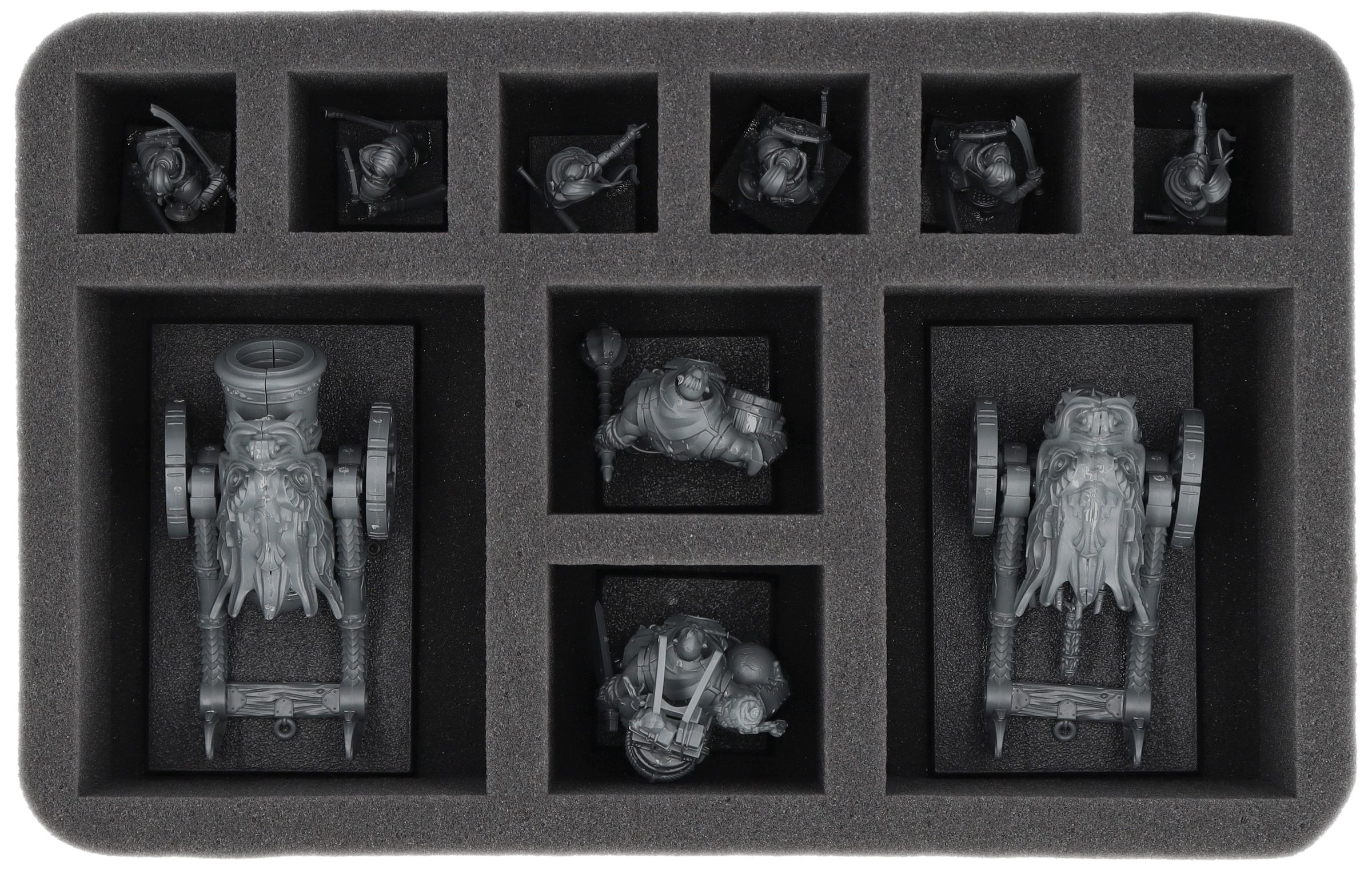 The varied foam layout provides space for different model sizes, helping to reduce contact between figures and to keep painted details better protected. Thanks to the generous interior dimensions, a large Grand Cathay force can be stored and carried in one bag, making setup, packing away, and transport more convenient for regular gaming and events.