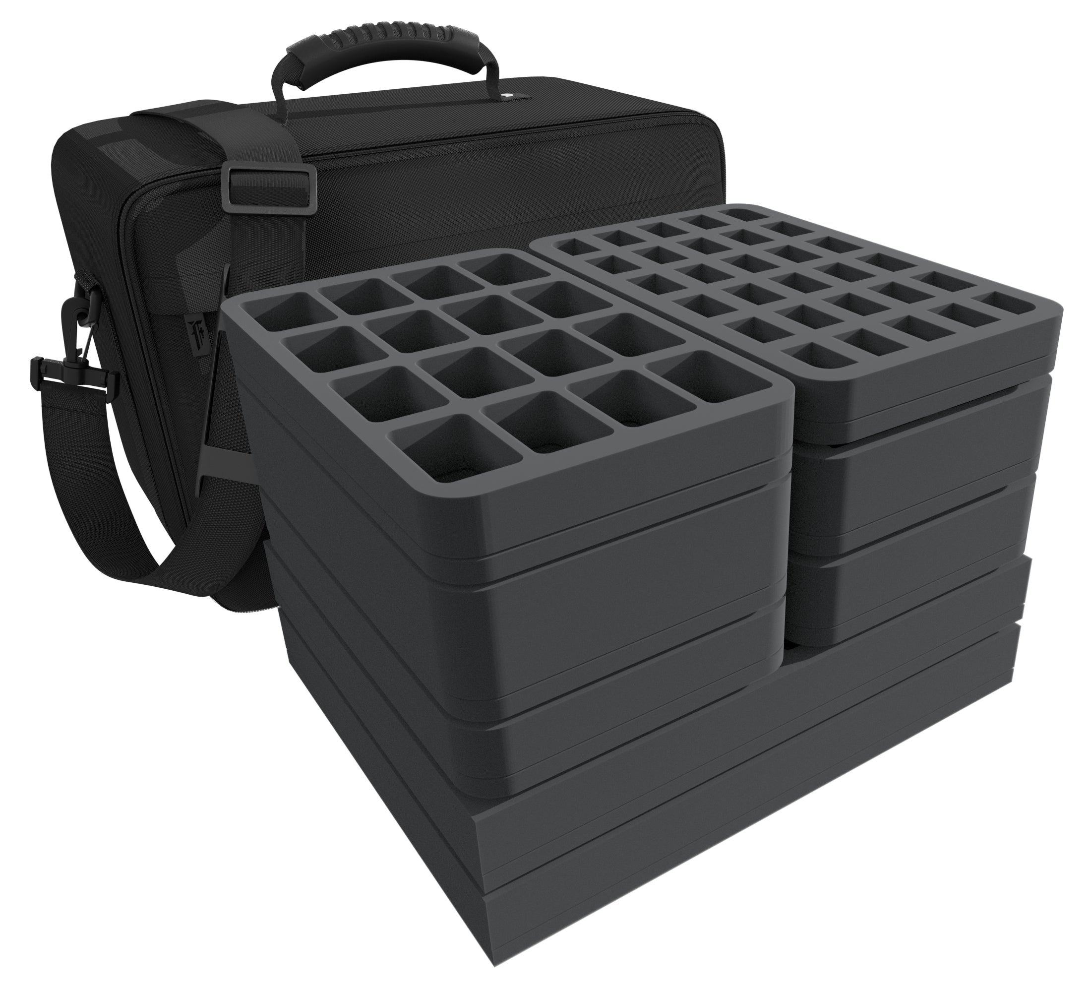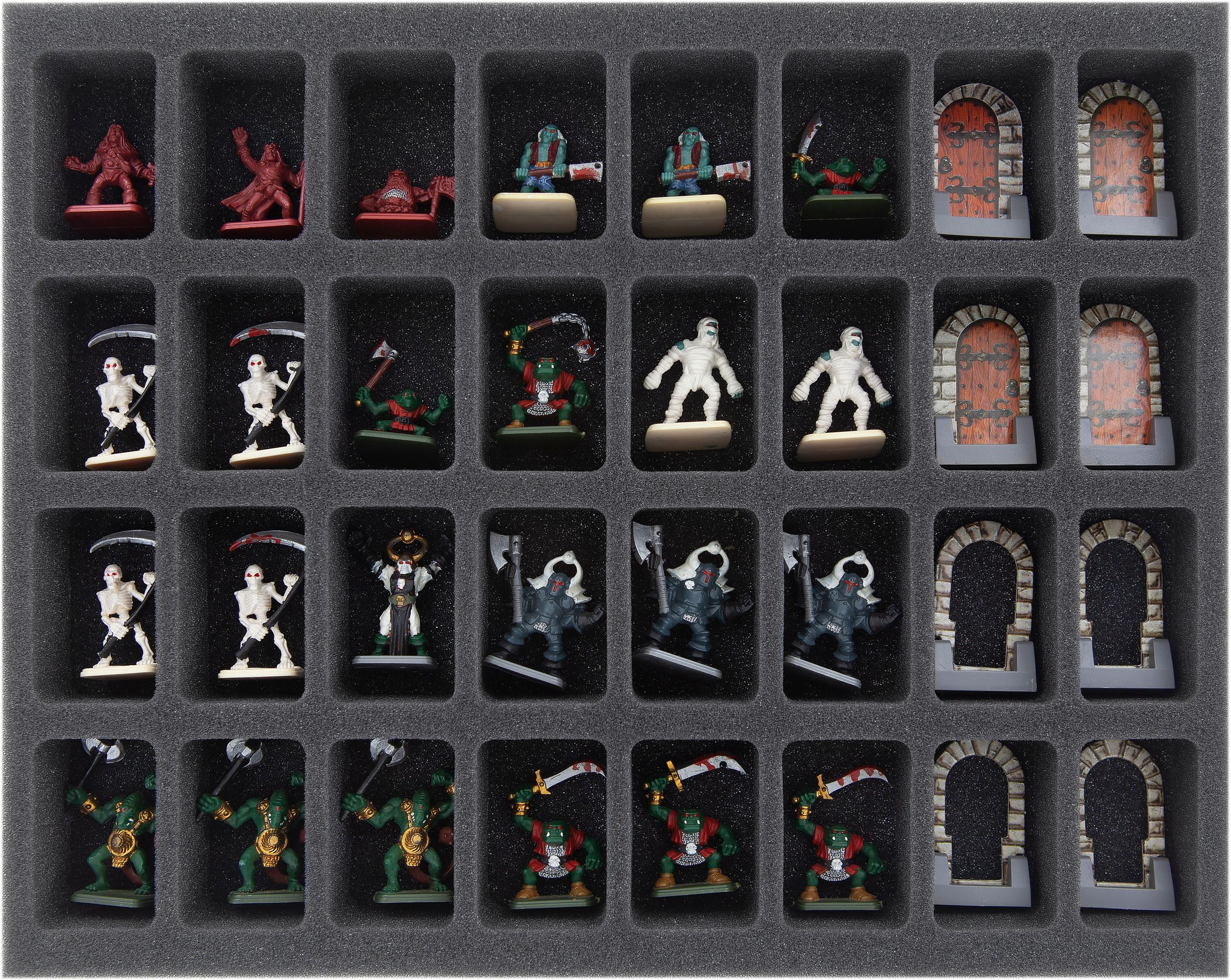 - 2 Full-Size foam trays each with 32 compartments for miniatures and doors (FSMEDS040BO)
