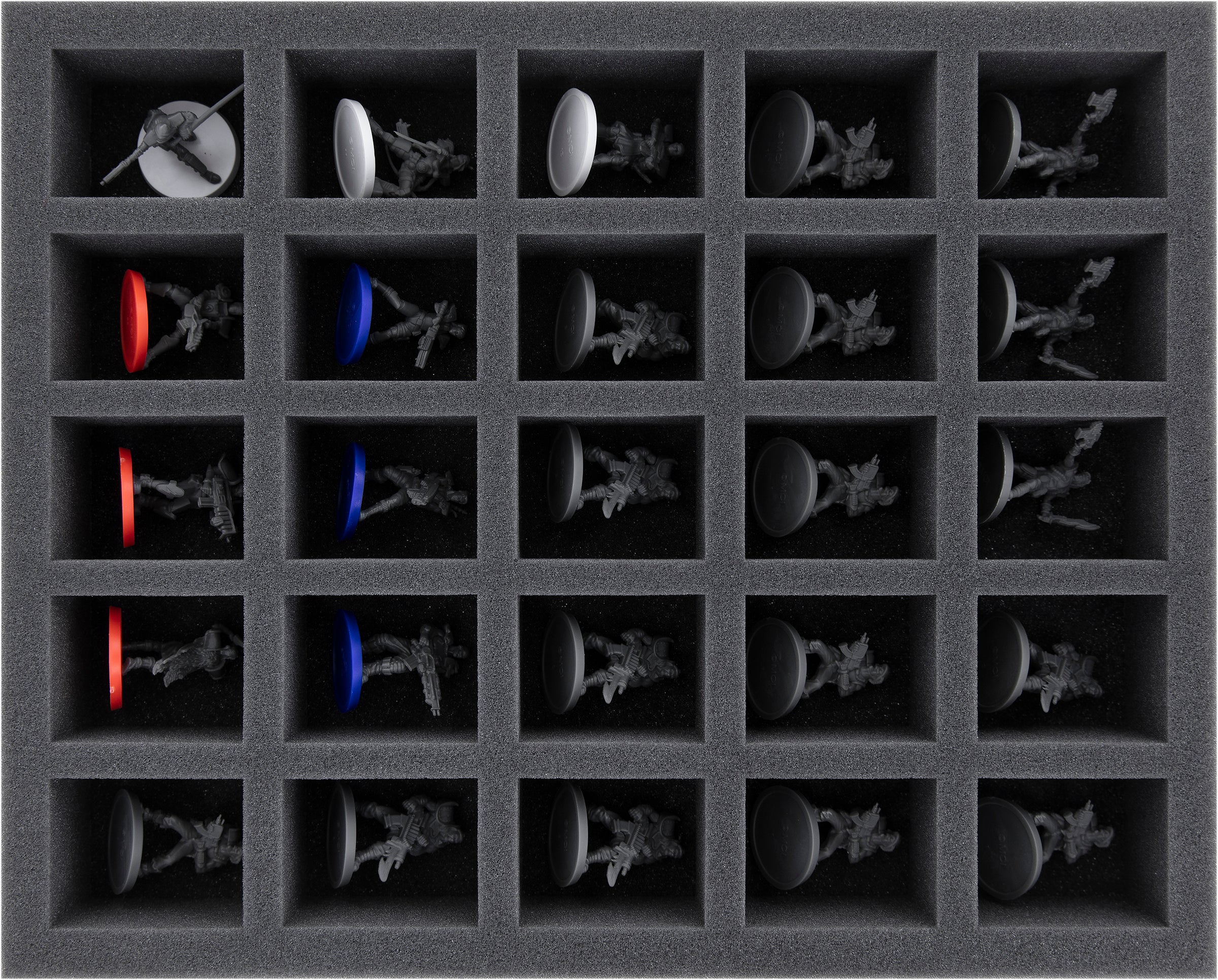 - 1 Full-Size foam tray for 25 miniatures (FSLQ050BO)