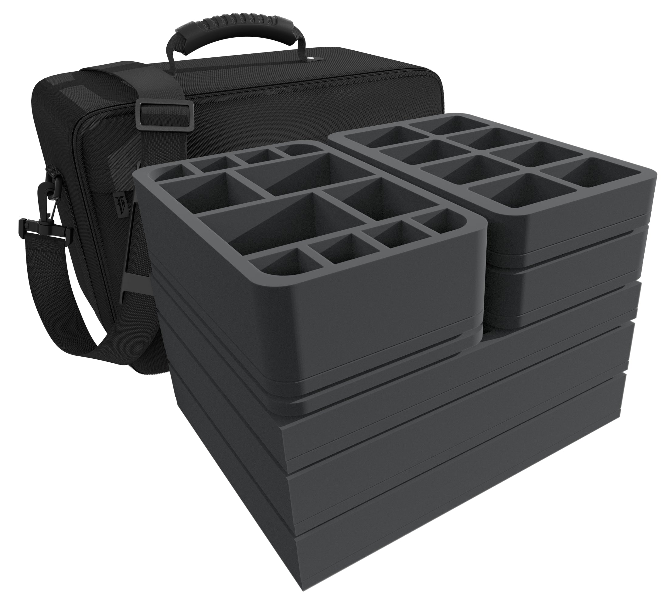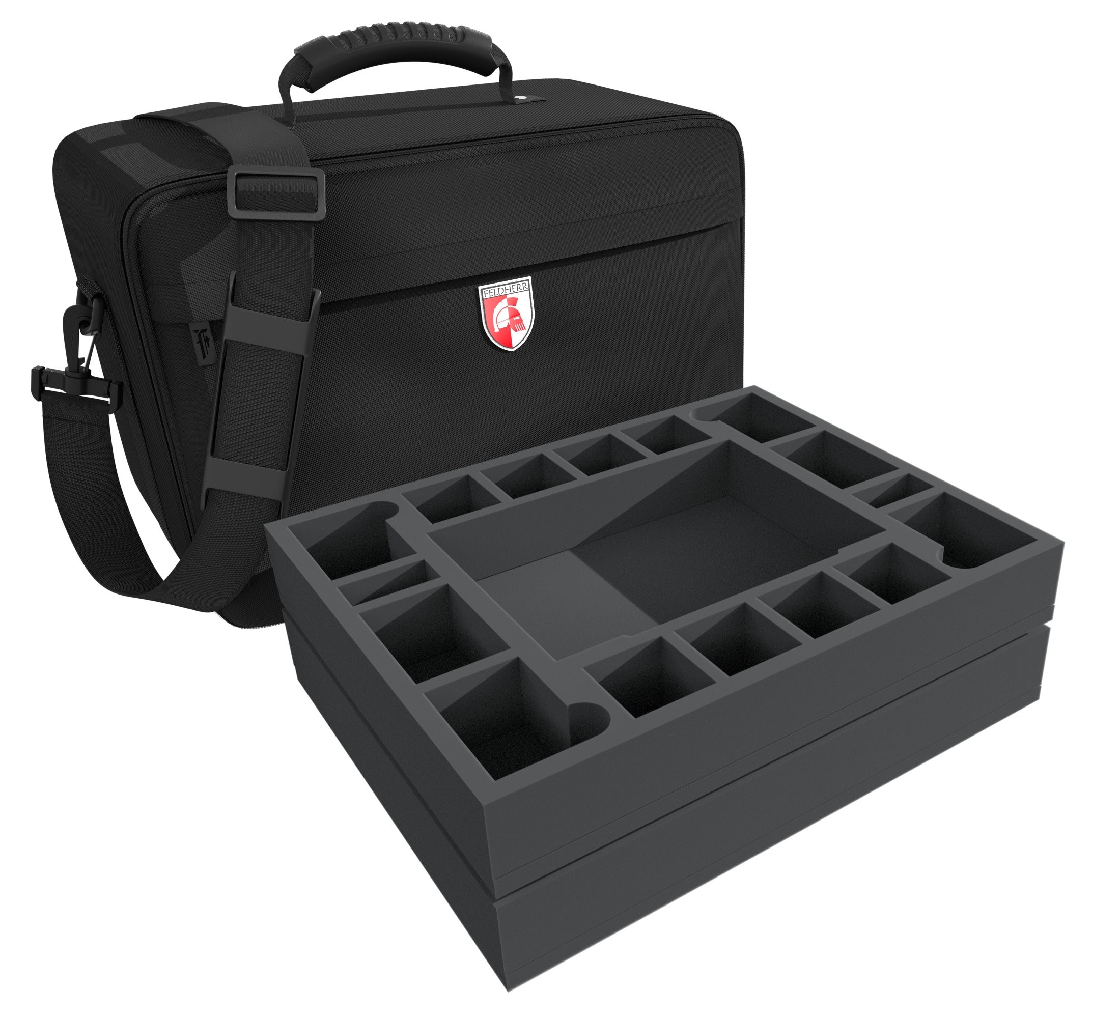 A compartment for every miniature, no matter if simple Worker, not-so-peaceful Peacekeeper-Bot, or gigantic Spoiler Abomination. Your miniatures will find a suitable compartment in the four Feldherr foam inserts provided.
