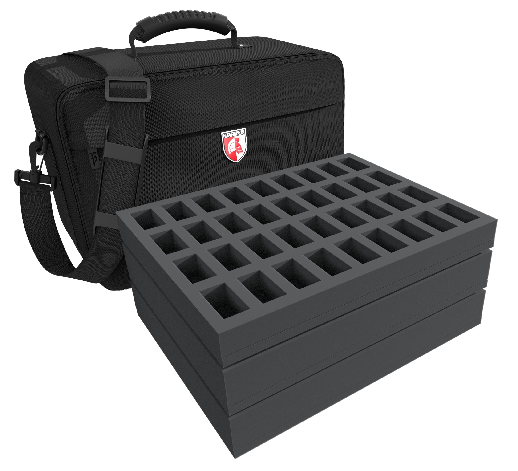 The Feldherr MAXI PLUS bag is made of particularly hard-wearing material. Padded side panels and a reinforced bottom additionally ensure that the miniatures are also excellently protected against external influences when transported by car or train.