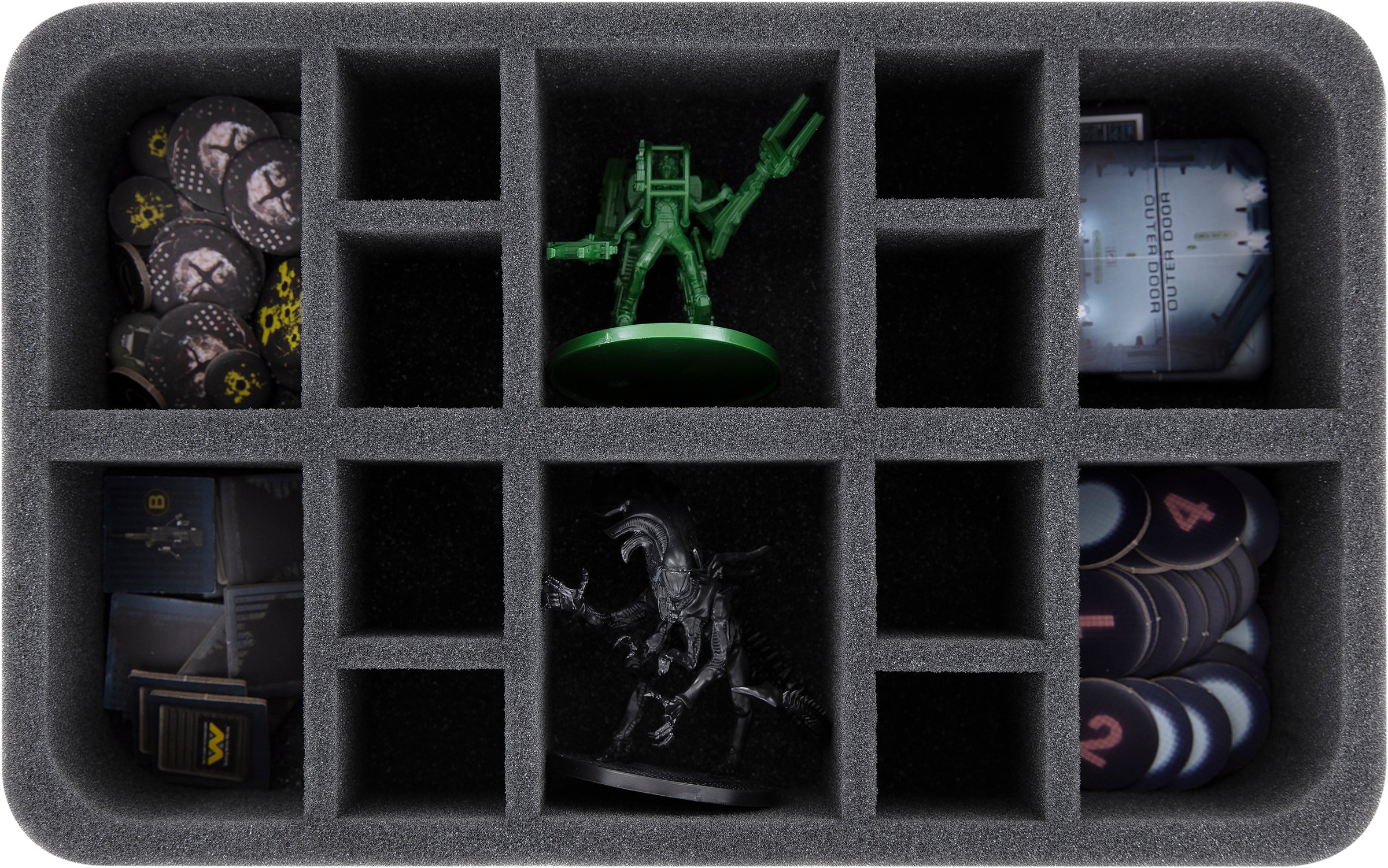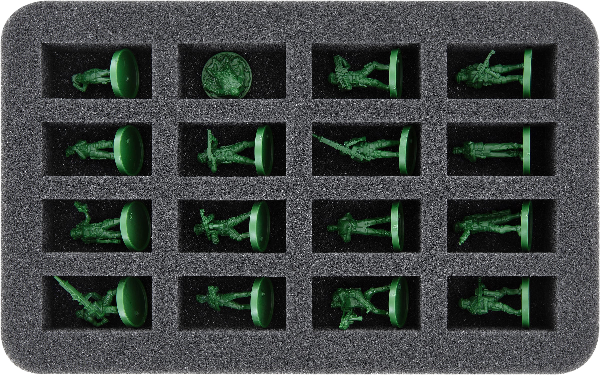 Thanks to the custom-fit cut, the miniatures have a tight fit. Even while transporting the miniatures through the alien-infested territory of Hadley's Hope, the figures do not slip and stay in place. The soft, fine-pored foam protects delicate details, such as the Marines' weapons or the aliens' tails, from breaking off and the colors of your painted models from scratches and paint abrasion.