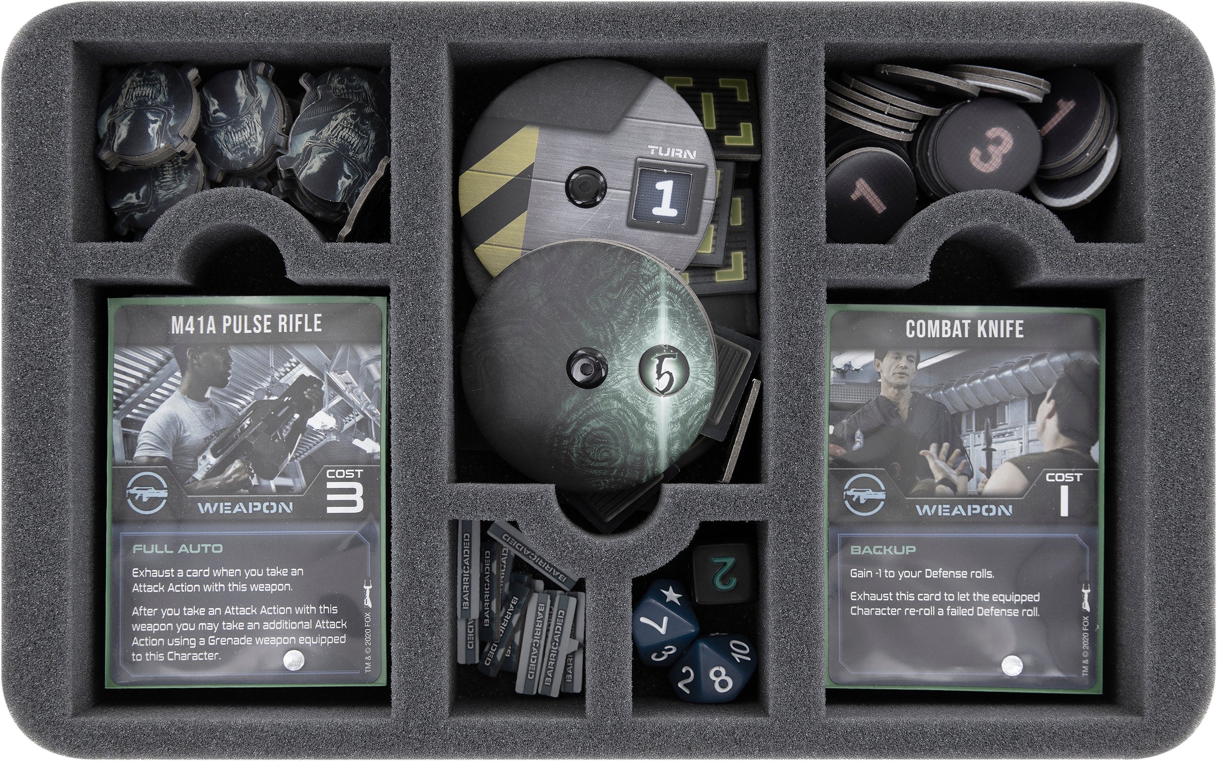- 1 Half-Size foam tray for cards and game material (HSMEQO050BO)