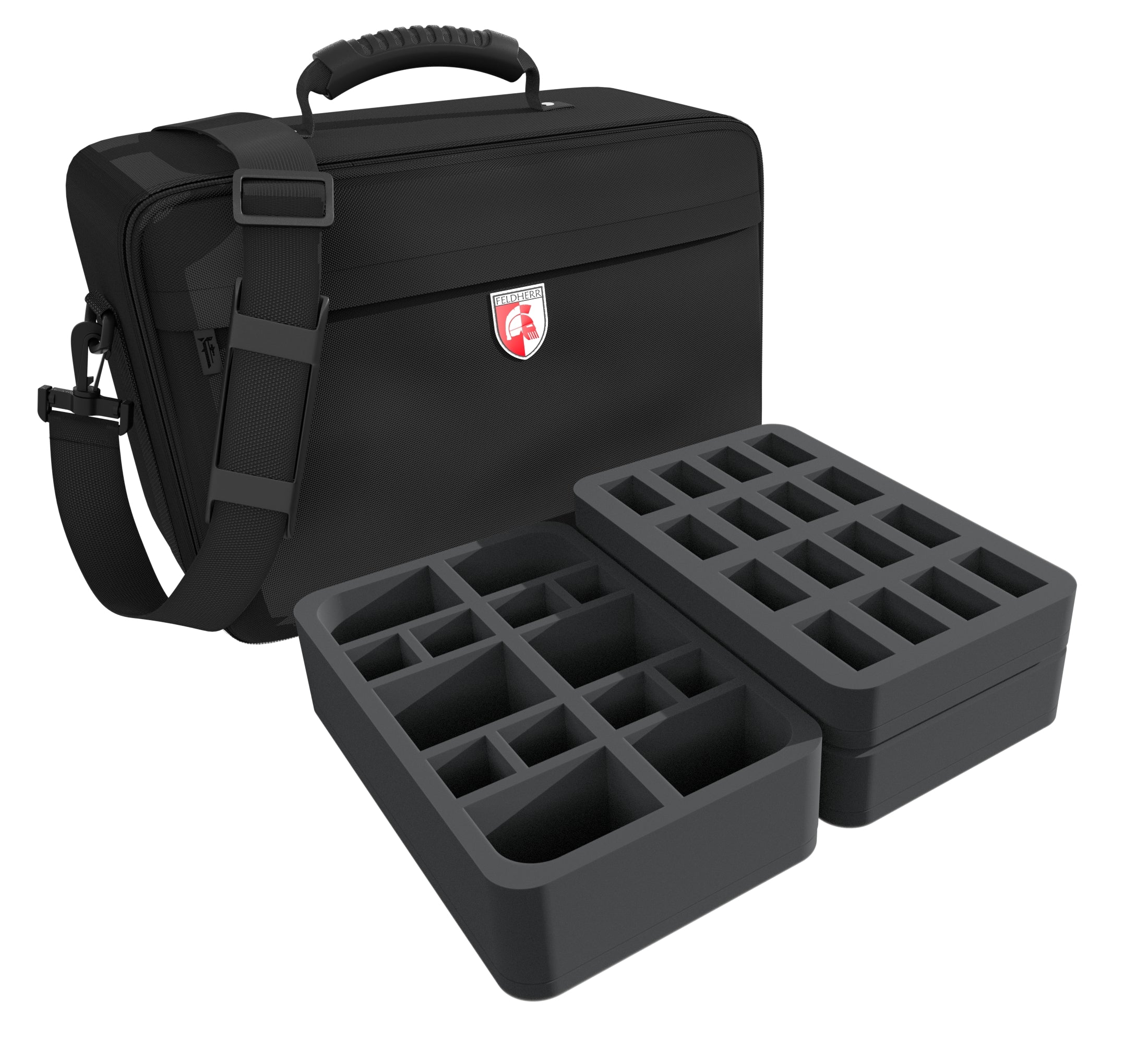 To ensure that the transport does not turn into a disaster for your miniatures, we support you with this matching Feldherr MAXI bag incl. custom foam inserts for the core game and the two expansions. In it, all contents can be well stored and transported.