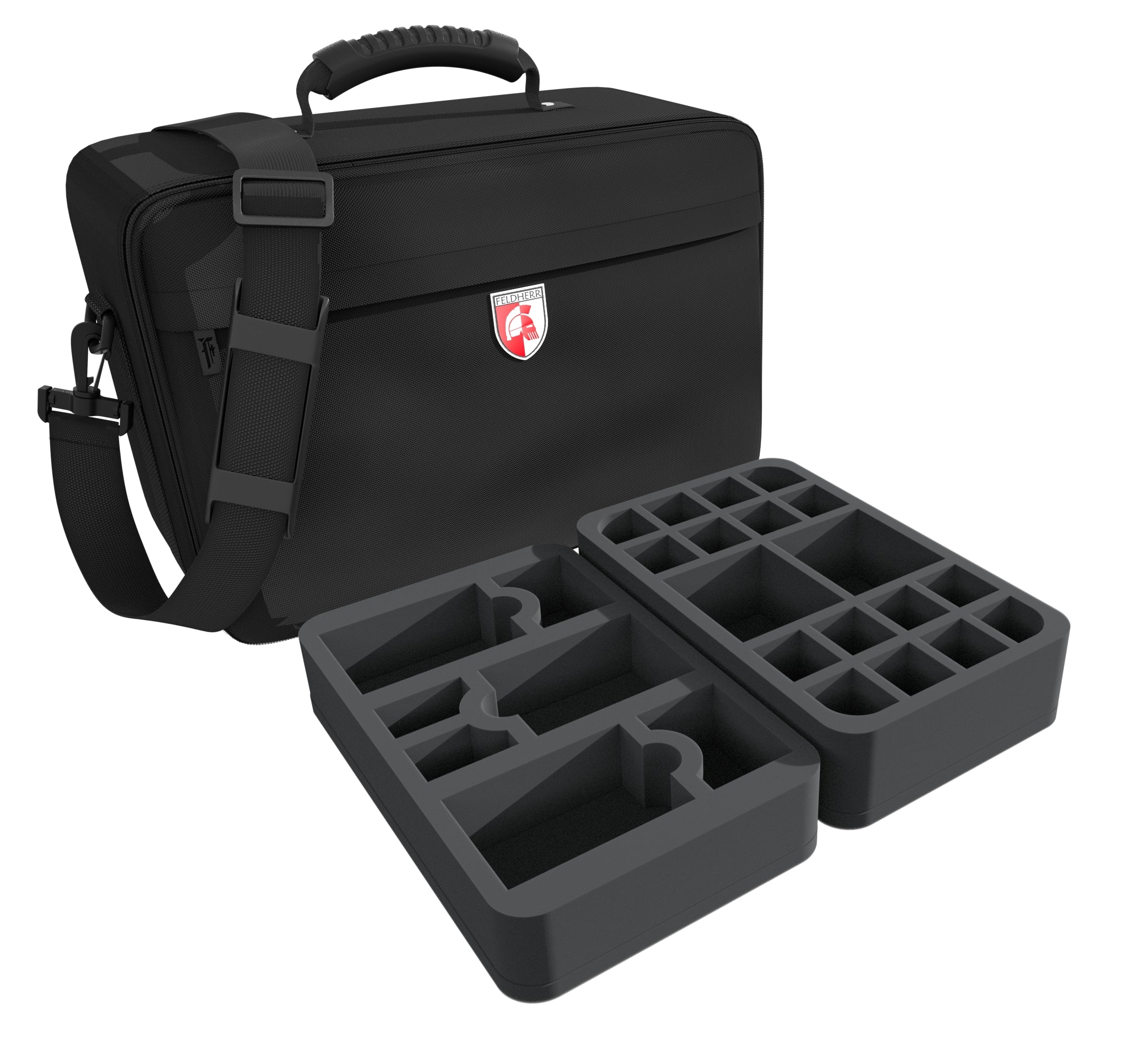 Finally, a foam topper ensures that your figures are securely packed all around and that everything is best prepared for transport. The Battlefield game board, dashboards and rulebook can be placed on top or stowed in the compartment at the front of the bag.