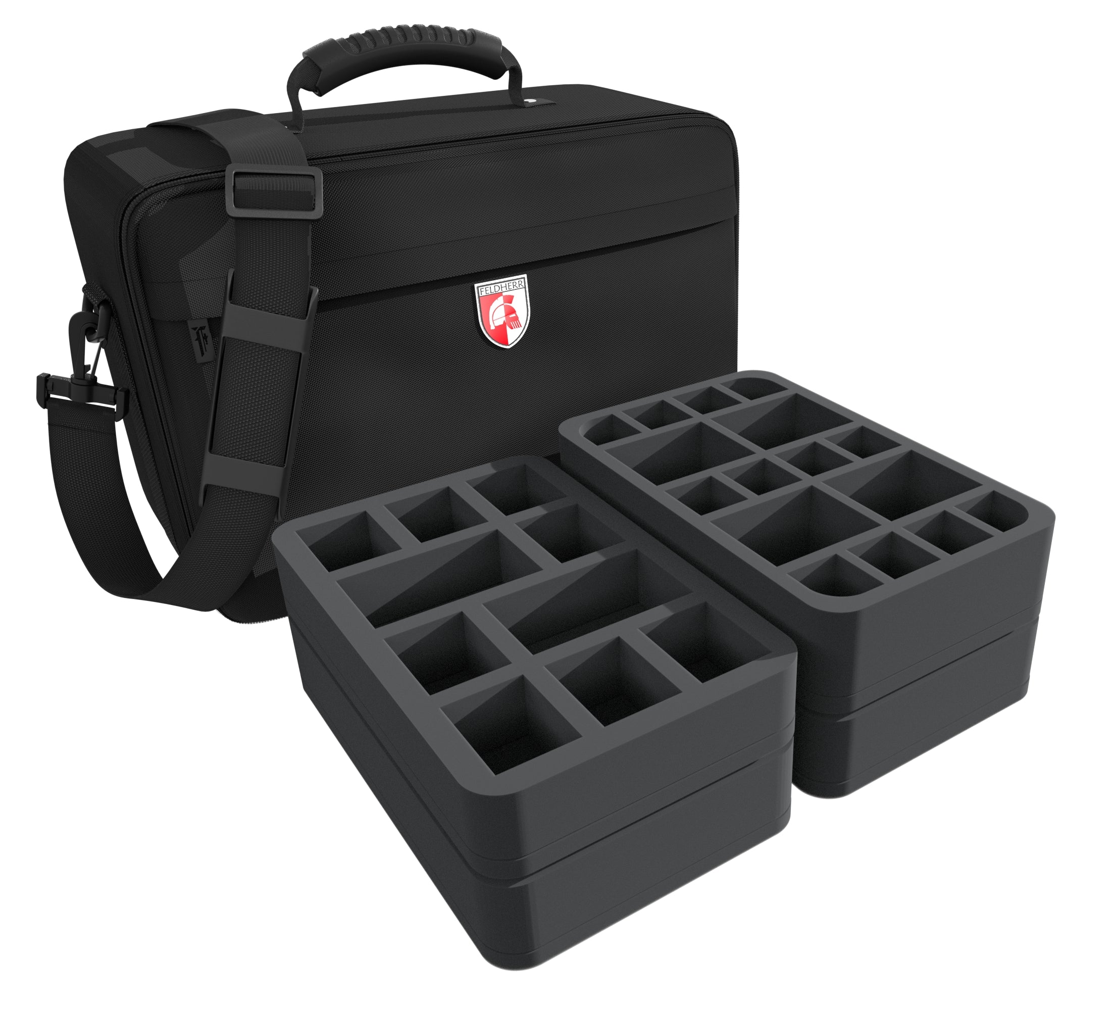 Finally, Feldherr puts an end your seemingly infinite worries about how to organize, store and transport your marvelous "Infinity The Game" miniatures. Our MAXI bag is jam-packed with high-quality foam for up to 110 miniatures on 25 mm-, 40 mm- and 55 mm bases. The fine-pored foam reliably protects your models against damage – fragile parts stays intact, the color of painted models remains unharmed.