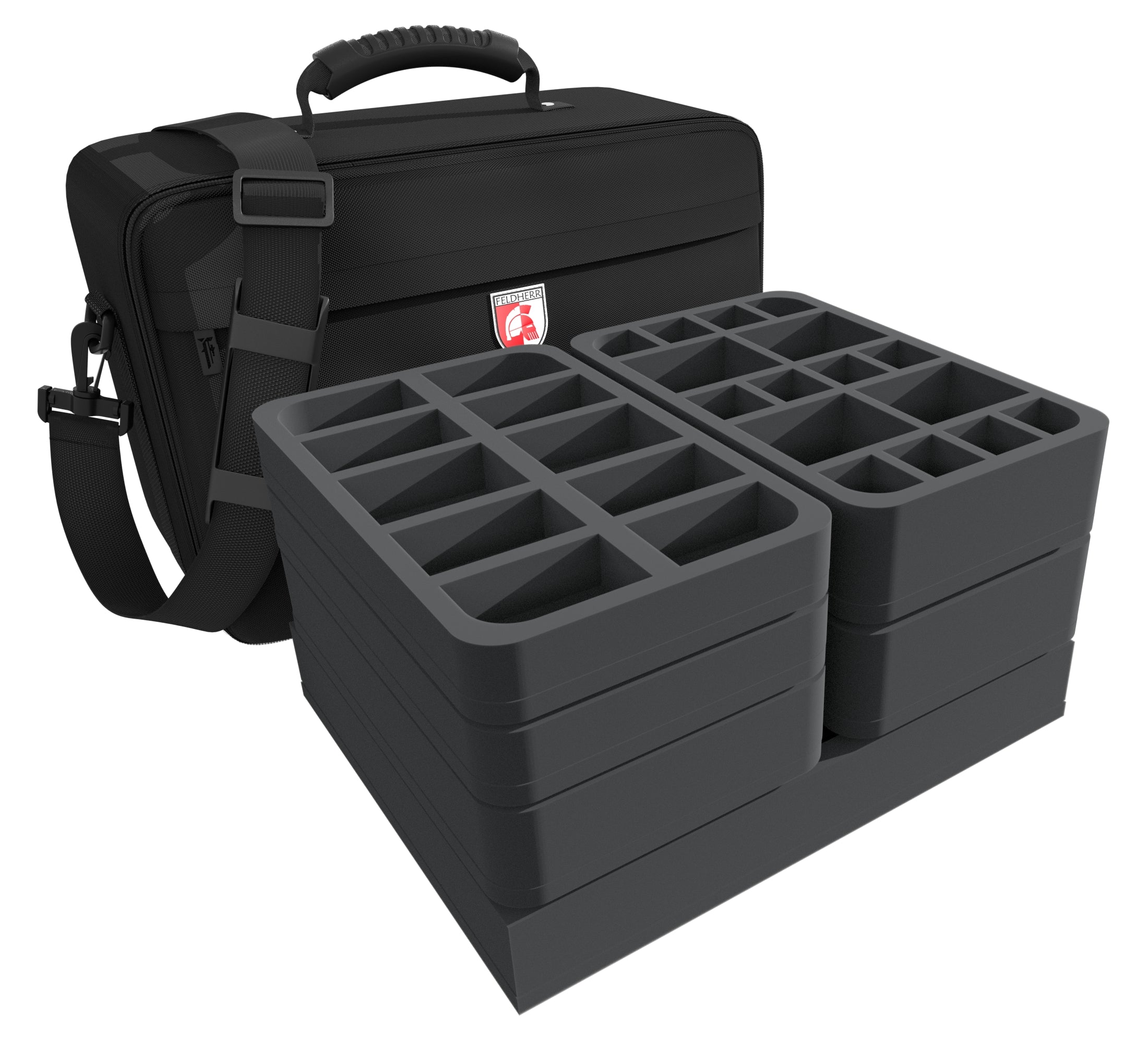 For players who like to carry their miniatures, cards and dice from time to time – or a lot, the Feldherr Max Bag is the ideal transportation tool. It combines safe protection and practical structures within 4 foam trays.