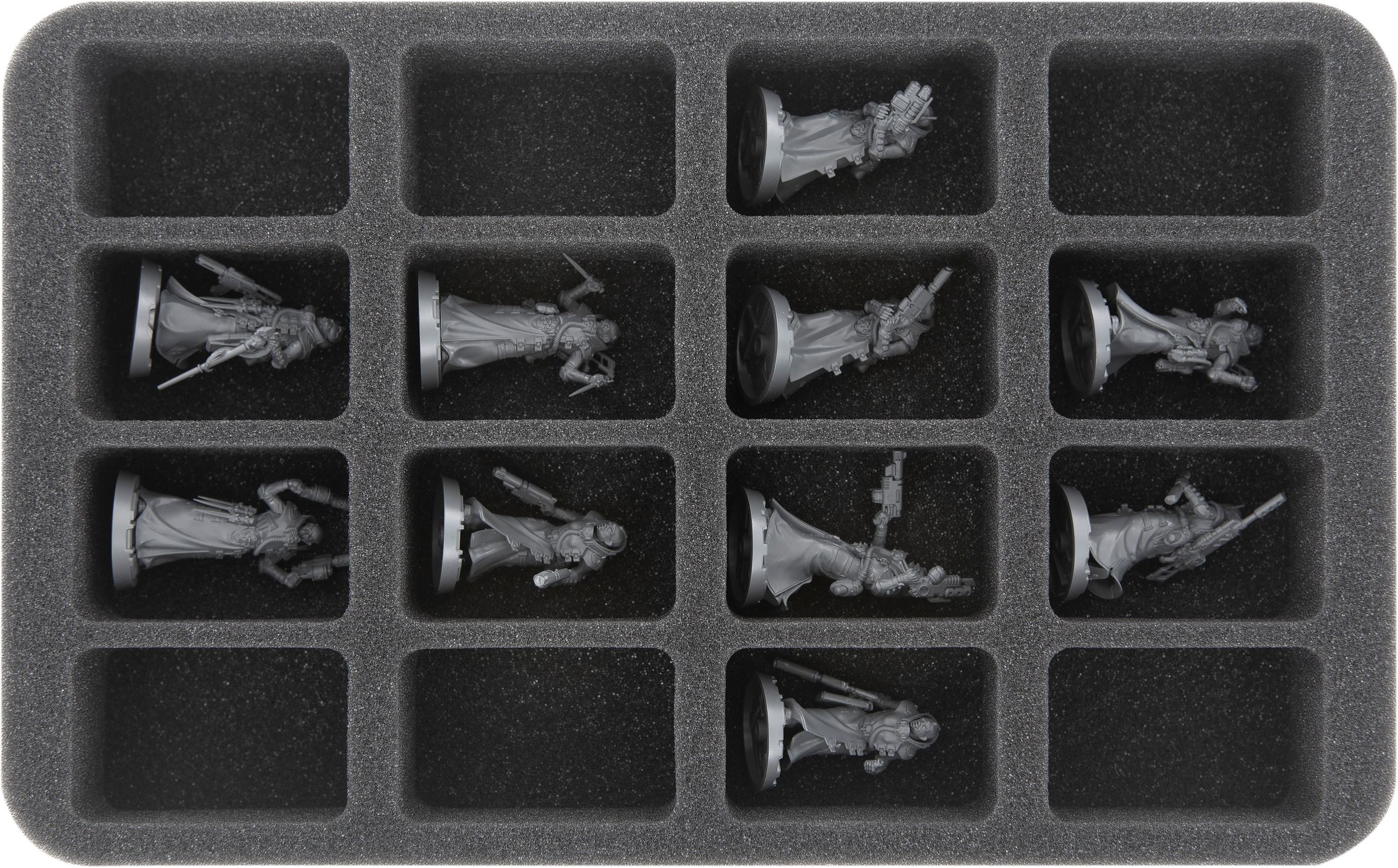 • 1 Half-Size foam tray with 16 compartments for Flammkyn Warriors, Brôkhyr Ironguides, and models of similar dimensions (HS040A037)