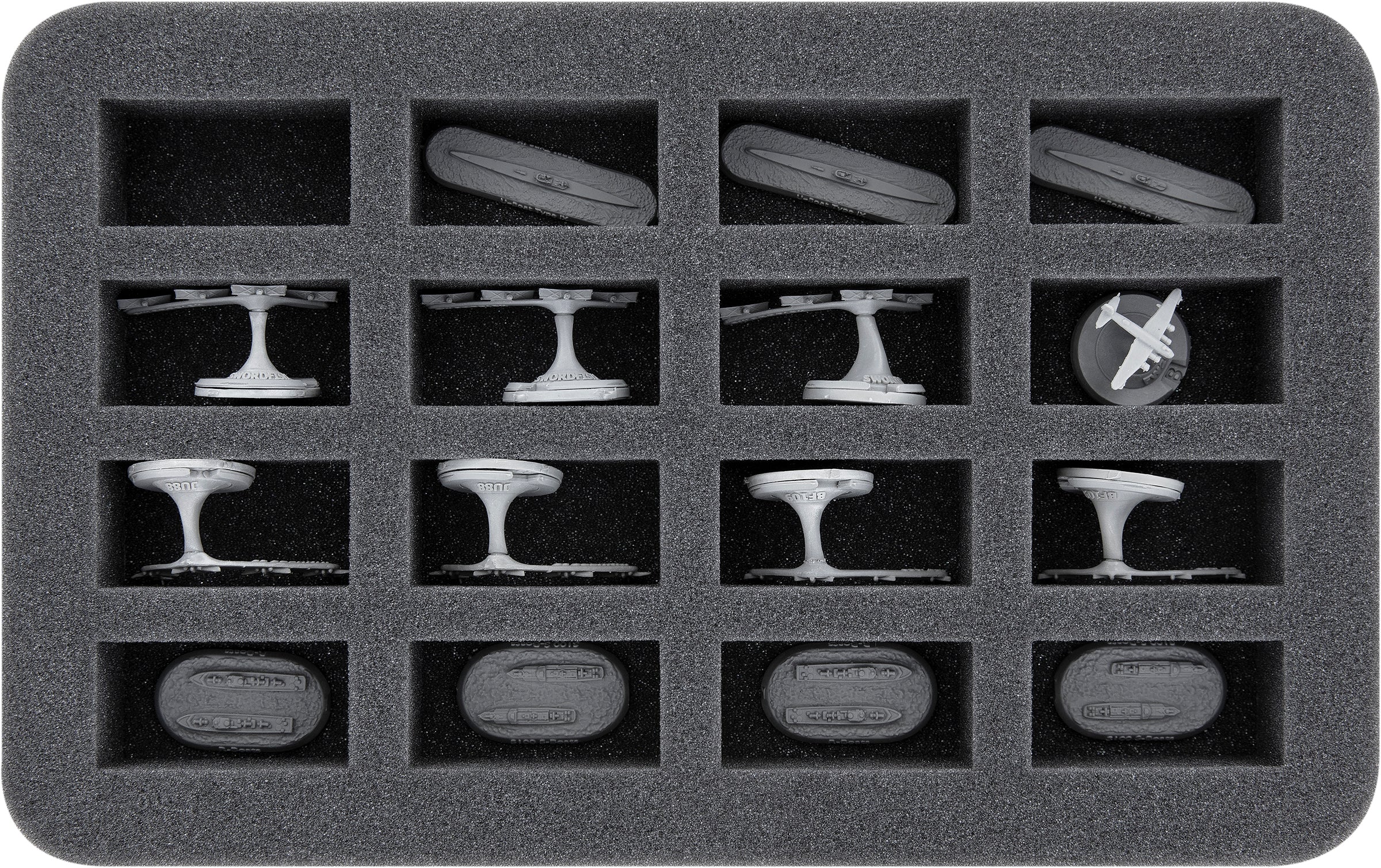 - Full-Size foam tray for 36 miniatures e.g. Ju88, BF 109, FW200, Swordfish, submarines or S-Boats (FS035A024)